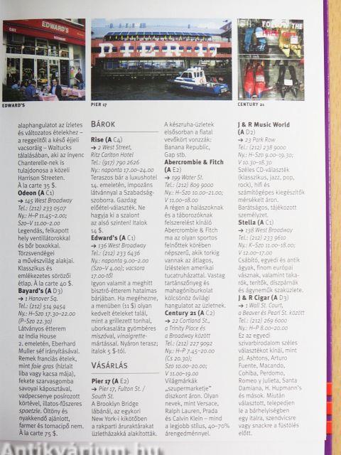 | Részletes térképek az amerikai metropoliszról a könyvben bemutatott nyolc nagy városrész áttekintésére. Négy oldal hasznos információ, jó ötletek és tanácsok, hogy könnyedén felvehesse a város ritmusát. | |