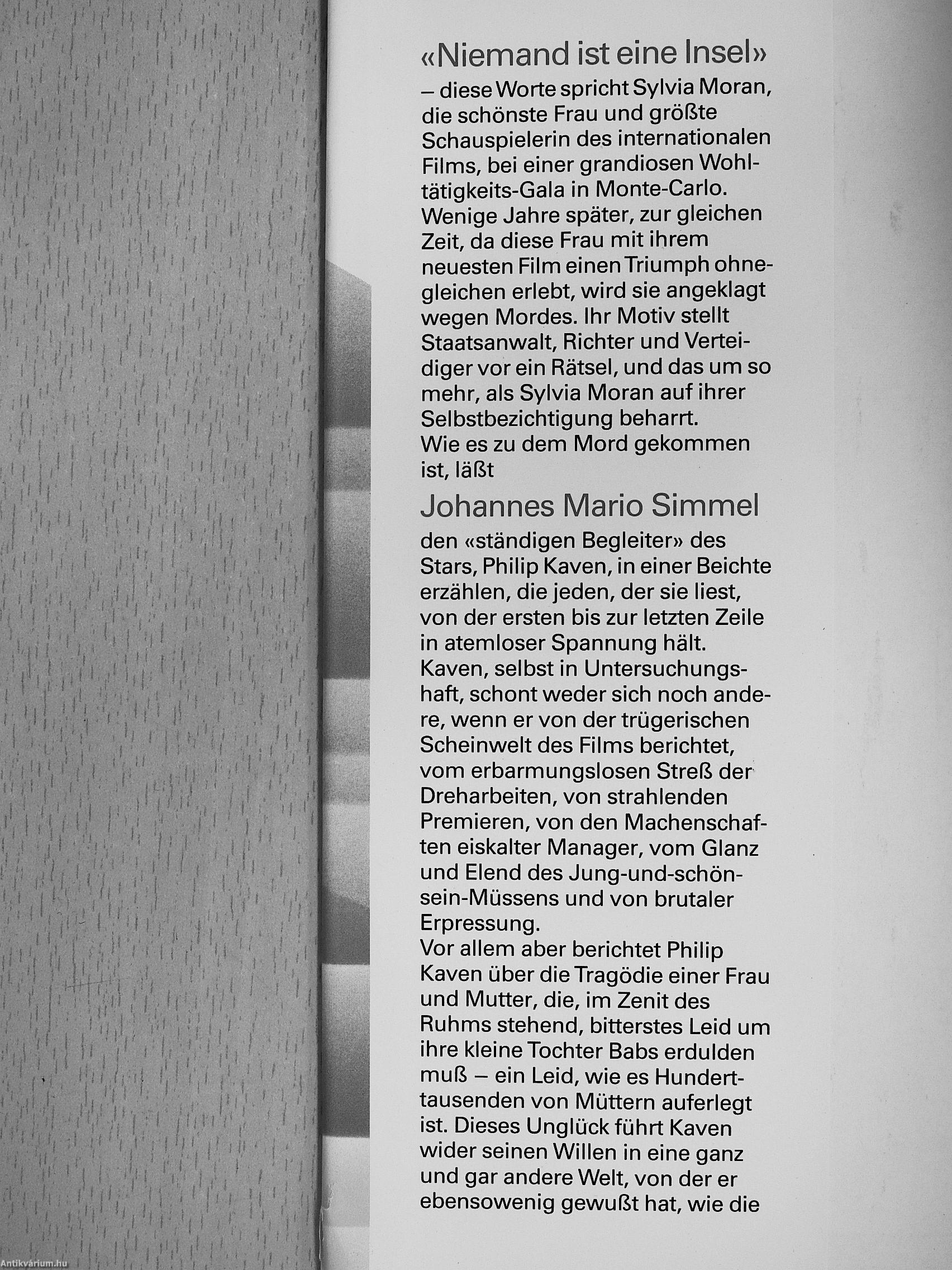 - diese Worte spricht Sylvia Moran, die schönste Frau und größte Schauspielerin des internationalen Films, bei einer grandiosen Wohl-tätigkeits-Gala In Monte-Carlo. Wenige Jahre später, zur gleichen Zeit, da diese Frau mit ihrem neuesten Film einen Triumph ohnegleichen erlebt, wird sie angeklagt wegen Mordes. Ihr Motiv stellt Staatsanwalt, Richter und Verteidiger vor ein Rätsel, und das um so mehr, als Sylvia Moran auf ihrer Selbstbezichtigung beharrt. Wie es zu dem Mord gekommen ist, läßt