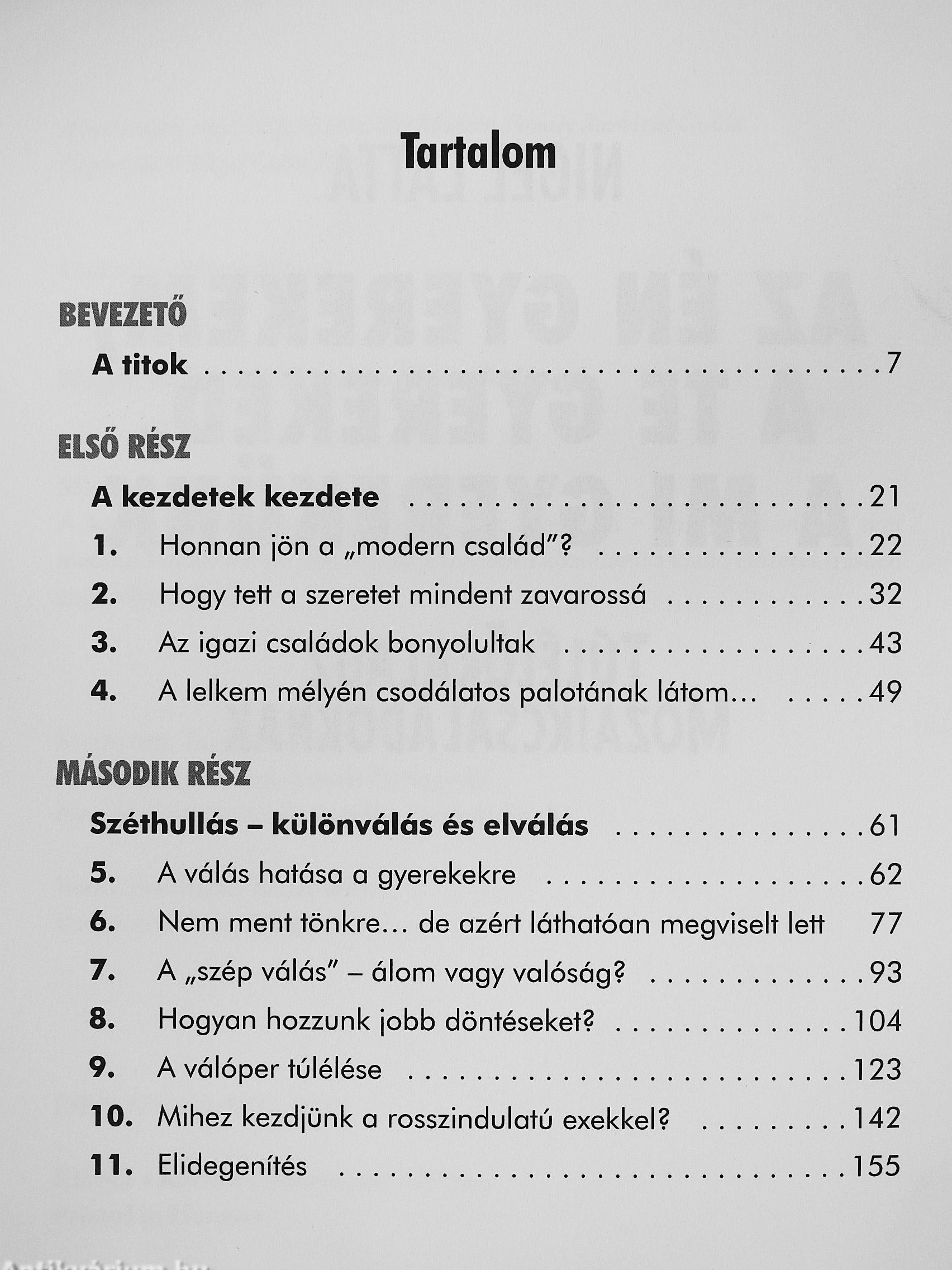 Legyen szó válásról, gyerekelhelyezésről, nehezen kezelhető exekről vagy alakuló új családformákrói - ez a könyv pontosan azokon a gondokon segít, amelyekre más gyerekpszichológus eddig nem kínált ennyire átfogó megoldást.