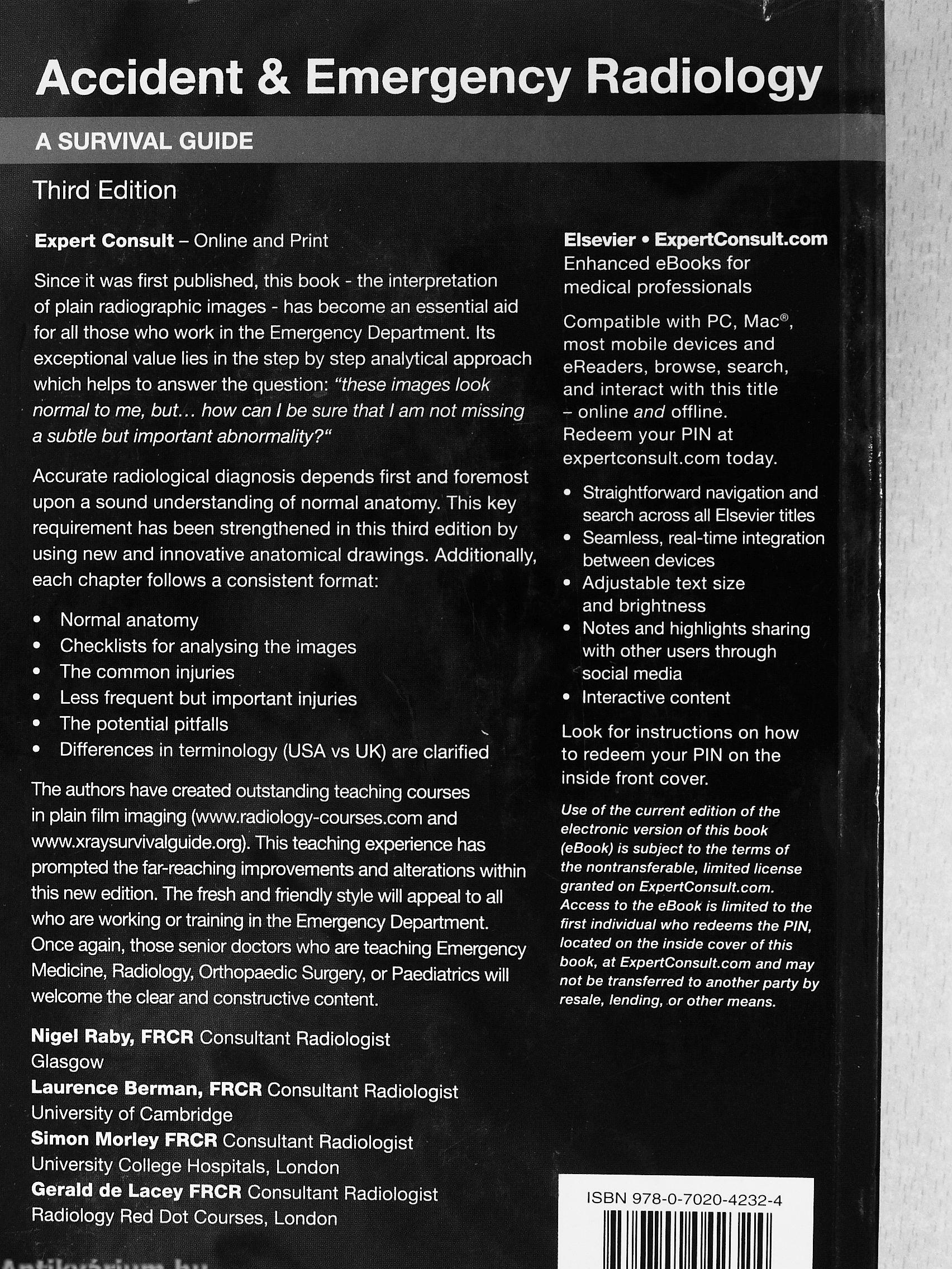 The authors have created outstanding teaching courses in plain film imaging (www.radiology-courses.com and www.xraysurvivalguide.org). This teaching experience has prompted the far-reaching Improvements and alterations within this new edition. The fresh and friendly style will appeal to all who are working or training in the Emergency Department. Once again, those senior doctors who are teaching Emergency Medicine, Radiology, Orthopaedic Surgery, or Paediatrics will welcome the clear and constructive content.