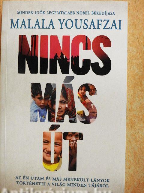 A Nobel-békedíjas Malala Yousafzai már gyerekként belső menekült lett a hazájában, Pakisztánban. Később, nemzetközi aktivistaként, a világ bármely pontjára eljuthatott, egy helyet kivéve: a saját hazáját. Fiataloknak és felnőtteknek szóló könyvében nemcsak sáját, megrázó élettörténetét meséli el, hanem más lányokét is, akik a világ különböző pontjairól menekültek el az erőszak, a háború és a bűnözés elől. Menekültek ők is, akik a hozzájuk hasonló milliókkal együtt gyakran láthatatlanok maradnak a statisztikák és hírek közönyös tengerében. A Nincs más út című könyv felnyitja a szemünket: a világ 68,5 millió menekültje semmiben sem különbözik tőlünk. Hétköznapi emberek ők is, akiknek nem volt más választásuk, mint elhagyni az otthonukat. Mert ez a választás életről és halálról szól.
