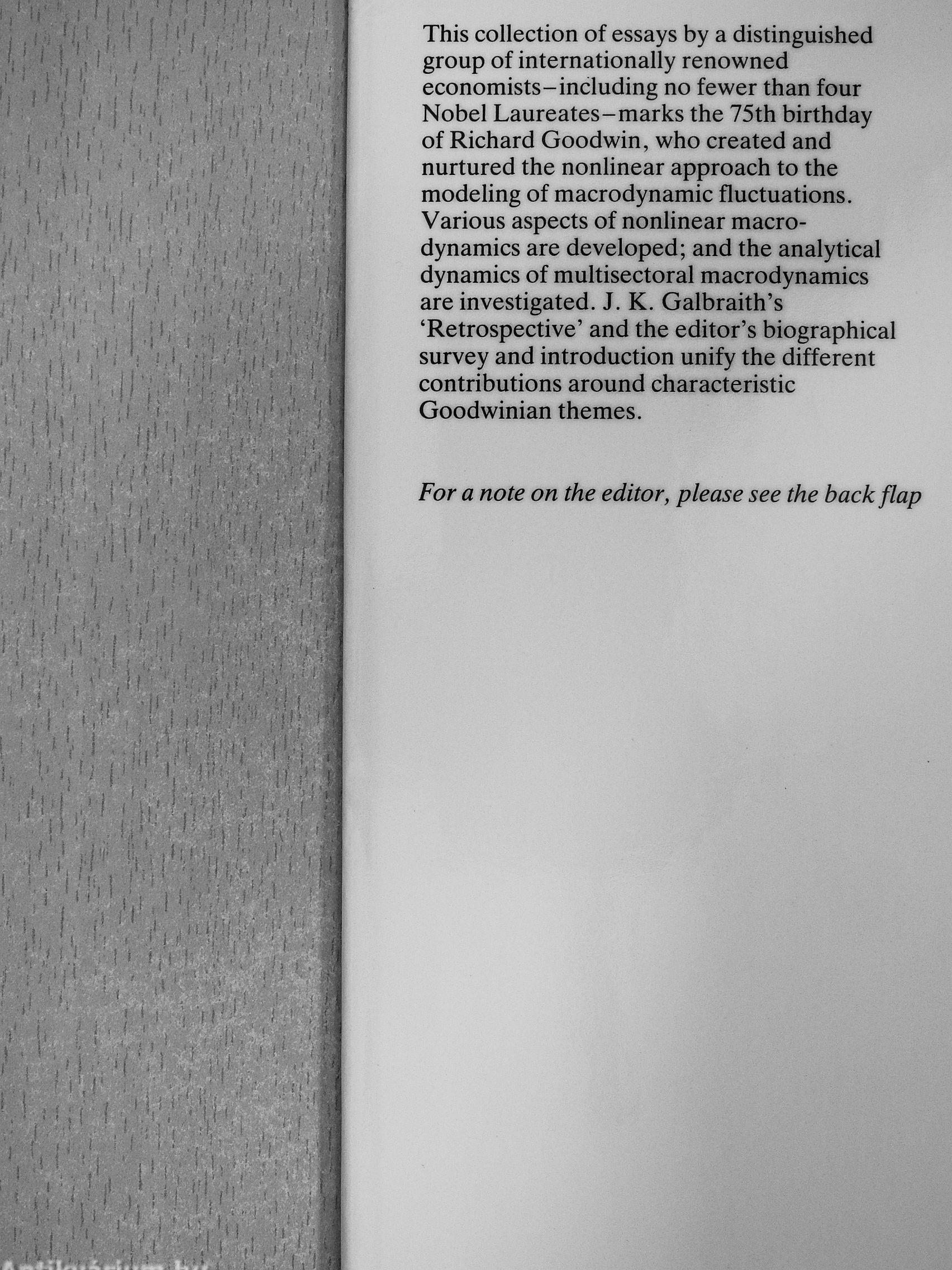 This collection of essays by a distinguished group of internationally renowned economists-including no fewer than four Nobel Laureates-marks the 75 th birthday of Richard Goodwin, who created and nurtured the nonlinear approach to the modeling of macrodynamic fluctuations. Various aspects of nonlinear macro-dynamics are developed; and the analytical dynamics of multisectoral macrodynamics are investigated. J. K. Galbraith's 'Retrospective' and the editor's biographical survey and introduction unify the different contributions around characteristic Goodwinian themes.