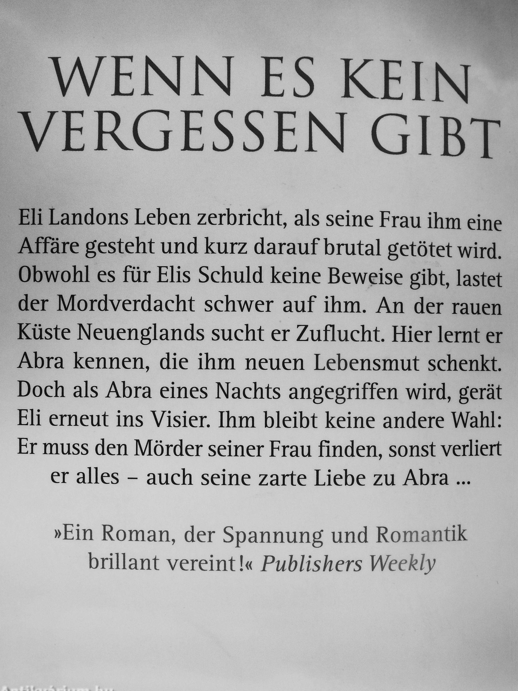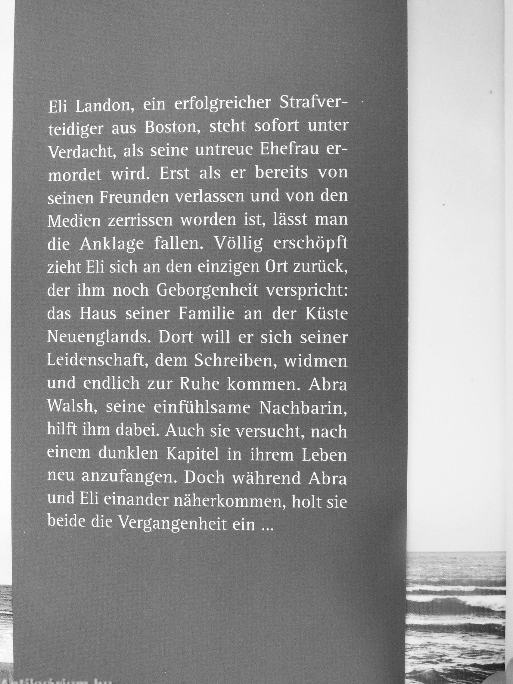 Eli Landon, ein erfolgreicher Straiver-teidiger aus Boston, steht sofort unter Verdacht, als seine untreue Ehefrau ermordet wird. Erst als er bereits von seinen Freunden verlassen und von den Medien zerrissen worden ist, lässt man die Anklage fallen. Völlig erschöpft zieht Eli sich an den einzigen Ort zurück, der ihm noch Geborgenheit verspricht: das Haus seiner Familie an der Küste Neuenglands. Dort will er sich seiner Leidenschaft, dem Schreiben, widmen und endlich zur Ruhe kommen. Abra Walsh, seine einfühlsame Nachbarin, hilft ihm dabei. Auch sie versucht, nach einem dunklen Kapitel in ihrem Leben neu anzufangen. Doch während Abra und Eli einander näherkommen, holt sie beide die Vergangenheit ein