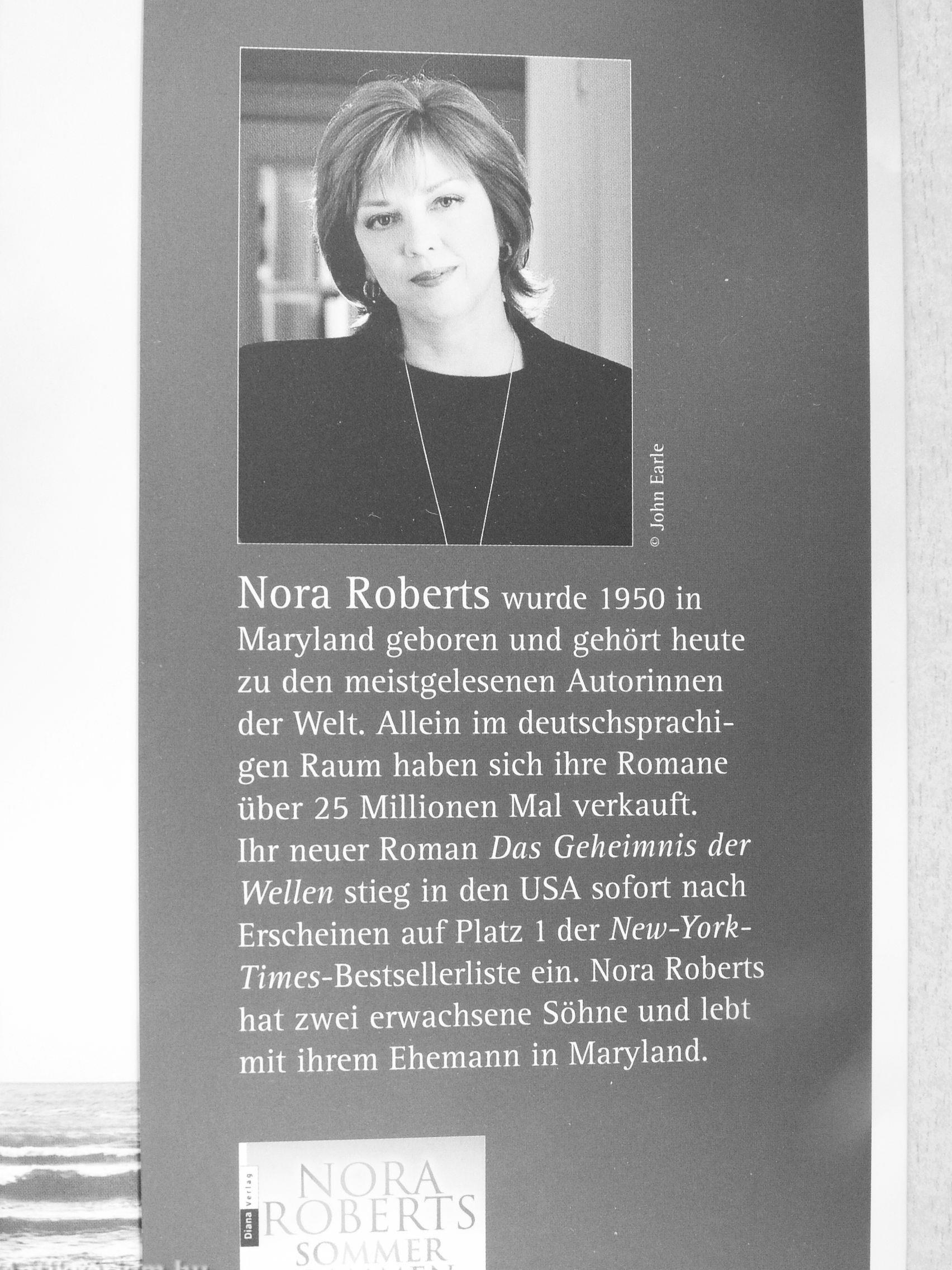 Nora Roberts wurde 1950 in Maryland geboren und gehört heute zu den meistgelesenen Autorinnen der Welt. Allein im deutschsprachigen Raum haben sich ihre Romane über 25 Millionen Mal verkauft. Ihr neuer Roman Das Geheimnis der Wellen stieg in den USA sofort nach Erscheinen auf Platz 1 der New-York-Times-Bestsellerliste ein. Nora Roberts hat zwei erwachsene Söhne und lebt mit ihrem Ehemann in Maryland.