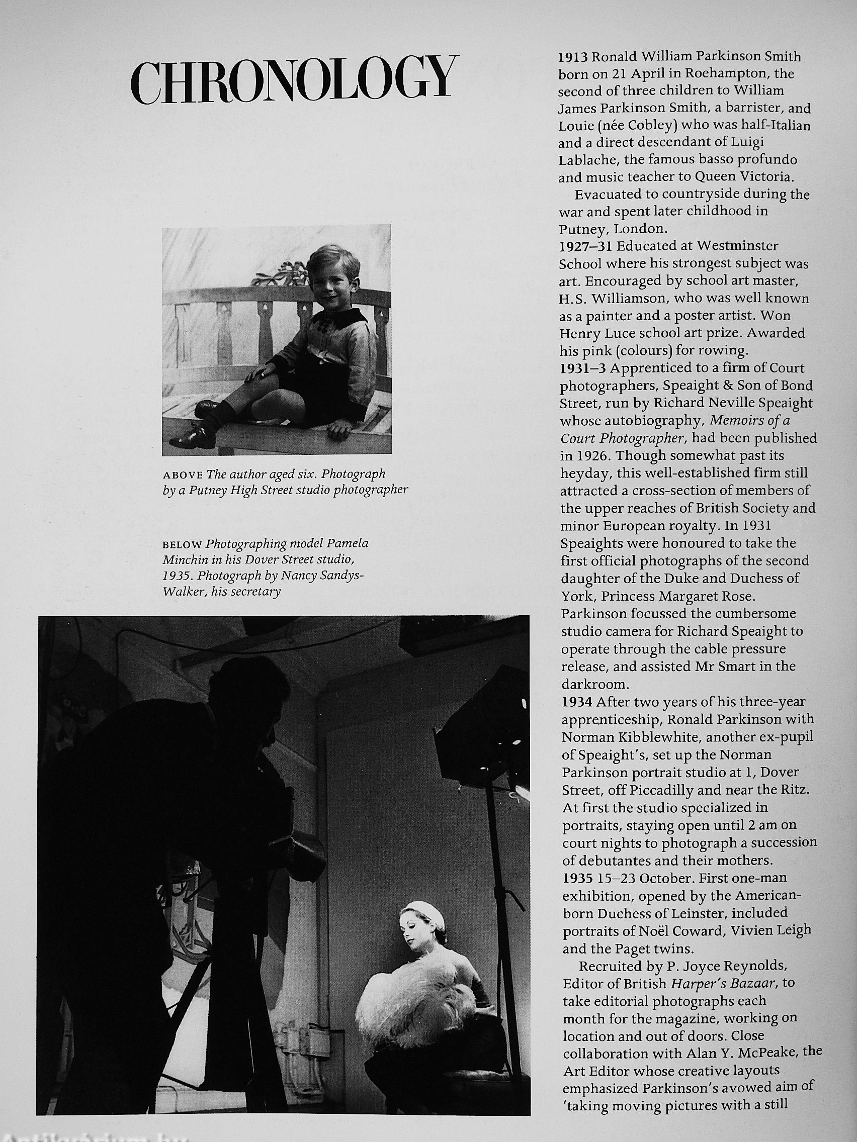 Norman Parkinson lives in Tobago in the West Indies, but works regularly in London, New York, Paris and other parts of the world. For years a top photographer for both American and British Vogue, he has also worked for Life, The Queen, and now works for Town and Country. He Li married to Wenda, his one-time star model.