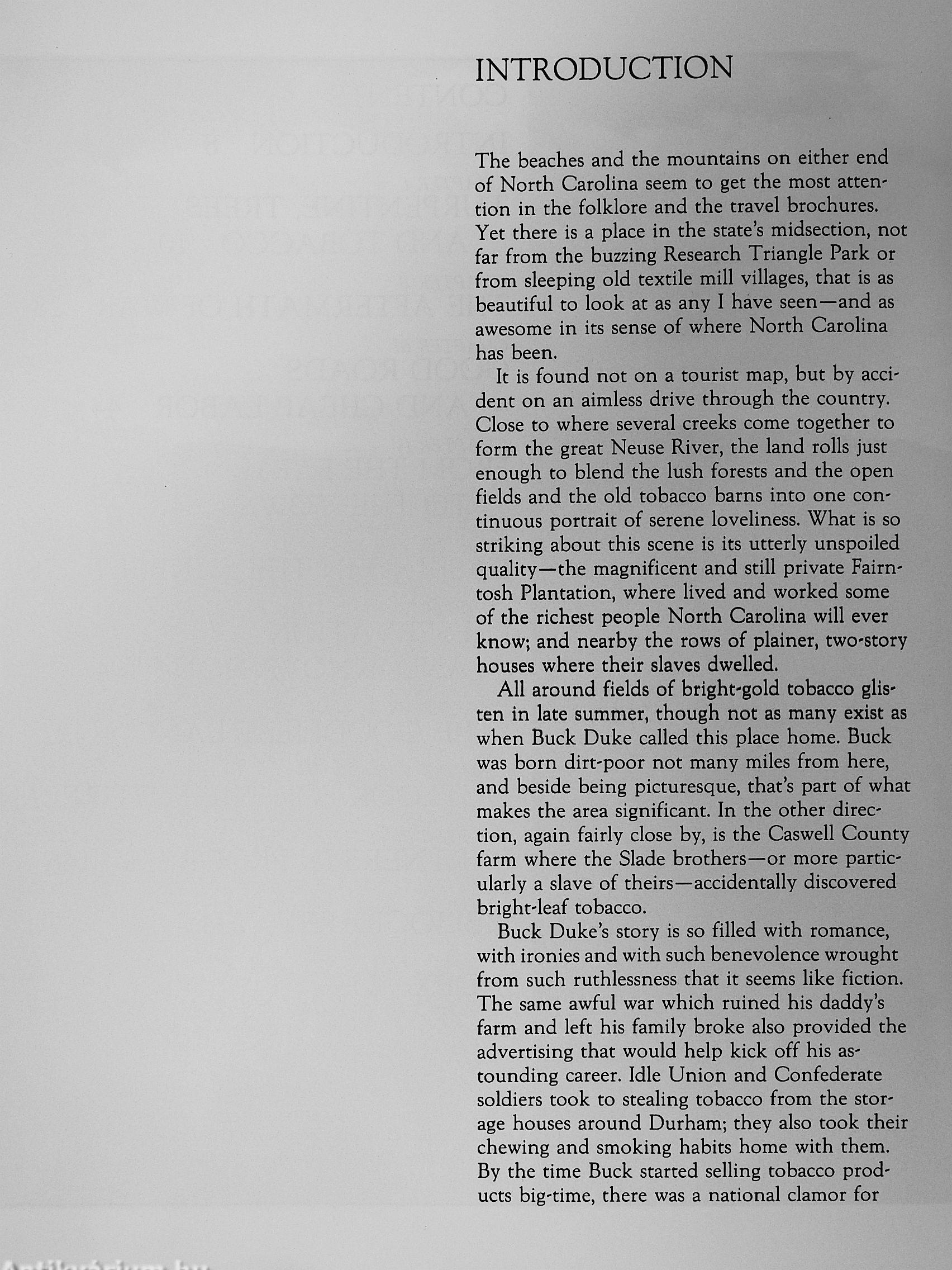 Tar Heel enterprise originally sprung from the land. Yet, natural wealth, combined with poor transportation, bolstered individual self-sufficiency at the expense of larger economic growth. Industrialization commenced only after early cotton millers saw their yarn return from the North as woven fabric—carrying a high price tag!