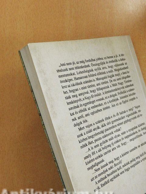 "Ami nem jó, az még fordulhat jobbra: ez benne a jó. A történészek nem tétlenkednek. Összegyűjtik és értékelik a dokumentumokat. Lehetőségünk nyílik arra, hogy rálássunk az összképre. Hamarosan feltárul előttünk a múlt. Megtekinthető lesz az iskolások számára is. Mutogatni fogják majd, s látni lehet, hogyan s mint történt, ami történt. De mi nem elégedhetünk meg annyival, hogy föllapozzuk a Múlt Nagy Történelemkönyvét, a Nagy Krónikát. A történelemkönyvek számokat sorolnak és egyenleget vonnak, ez a dolguk. Felfedik a számokat és elfedik az embereket, ez a korlátjuk. Jelentést készítenek arról, ami egészében történt. Ám ez az Egész csupán a dolgok fele.