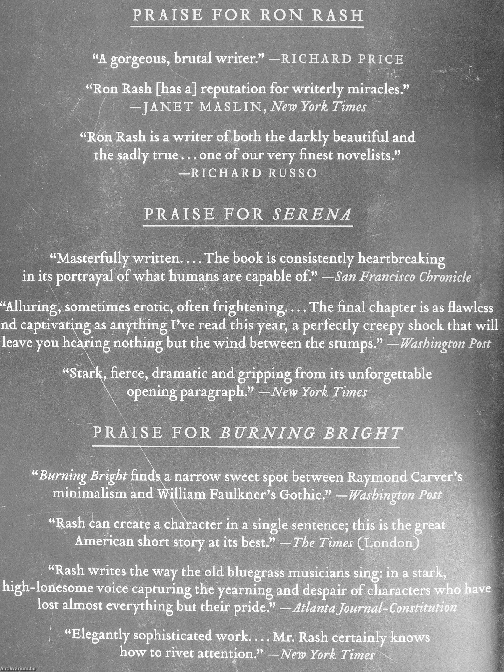 "Rash writes the way the old bluegrass musicians sing: in a stark, high-loriesome voice capturing the yearning and despair of characters who have lost almost everything but their pride." —Atlanta Journal-Constitution