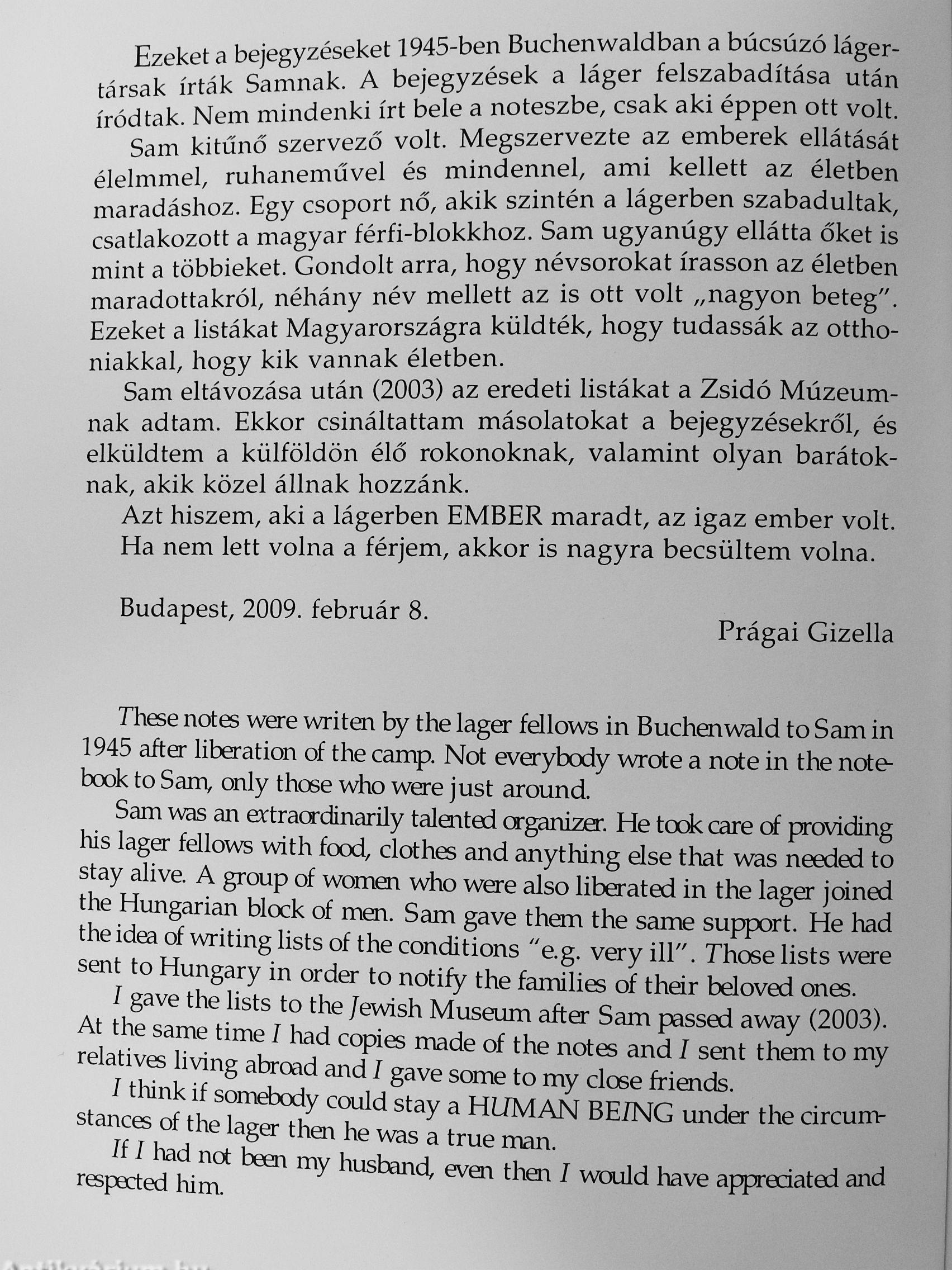 Buchenwald 1945 Prager Sam emlékkönyve/Buchenwald 1945 Recollections of Sam Prager