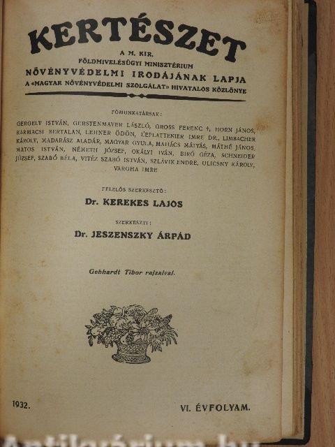 Növényvédelem 1932. január-december/Kertészet 1932. (nem teljes évfolyam)