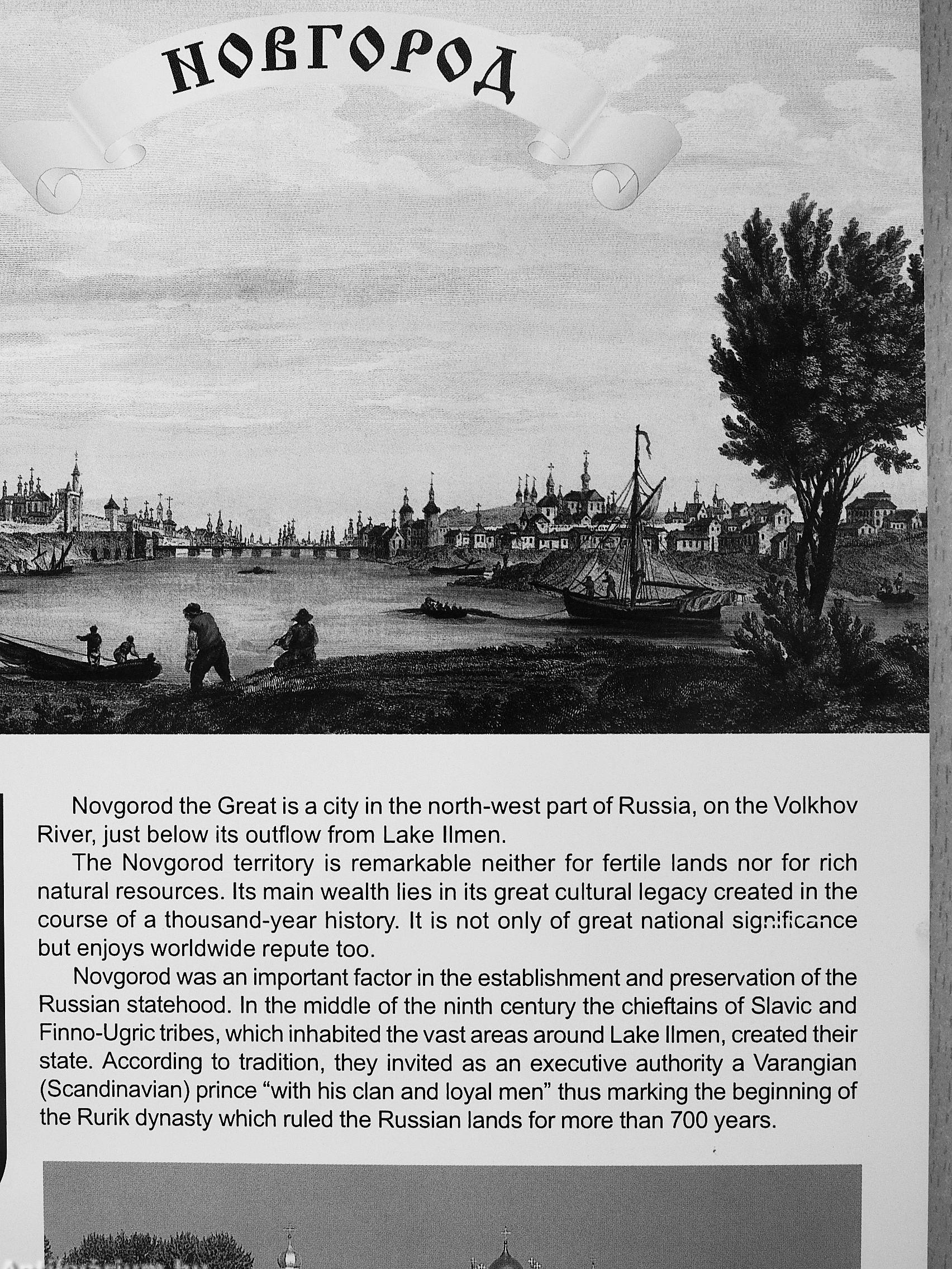 Novgorod is well known as a unique artistic centre. Its Kremlin, or Detinets, first mentioned in the Chronicles for the year 1044, is one of the city's main architectural landmarks. On the territory of the Kremlin stands the most ancient cathedral of Russia -St Sophia's (11th century) where the miracle-working icon Our Lady of the Sign, which has become the holy relic of entire Russia, can be seen.