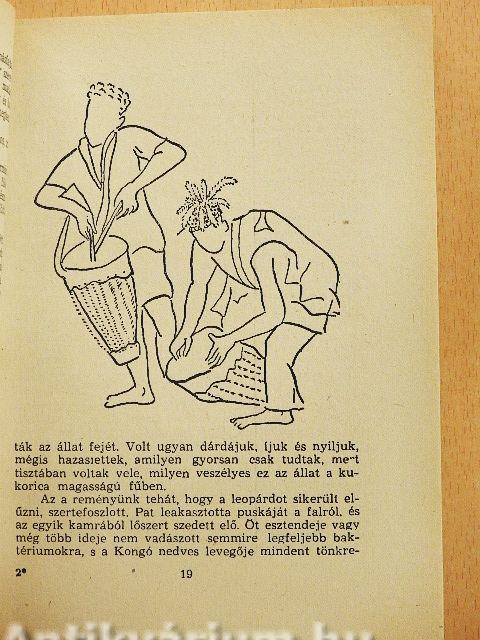 | Pereskedés a lopásjog körül - Kongó borai és mámorai - Az okapi csak »tányérról« eszik - Katalina, a csimpánz - Vilmos, Erzsébet és a gyermekparalízis - Különös bennszülött gyógymód - »Mindig van hal a folyóban« - A márkiné öröme - Hogyan öltözködik egy filmsztár az őserdőben | 139 |