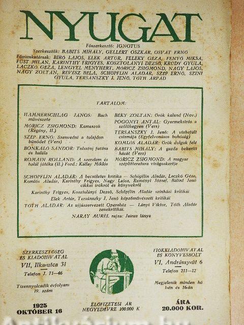 Nyugat 1925. október 16.