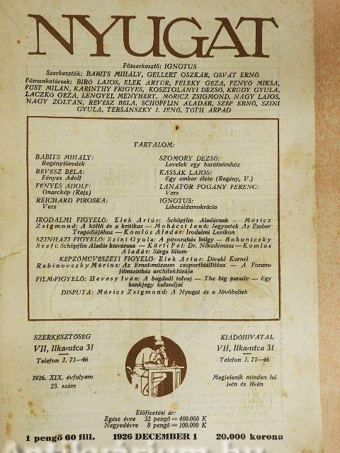 Nyugat 1926. december 1.
