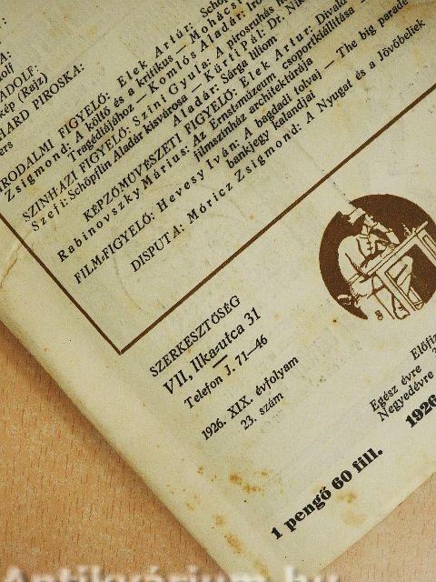 Megjegyzés: Egy fekete-fehér illusztrációval. Megjelenik minden hó 1-én és 16-án. Hungária Hírlapnyomda R. T. nyomása, Budapest.