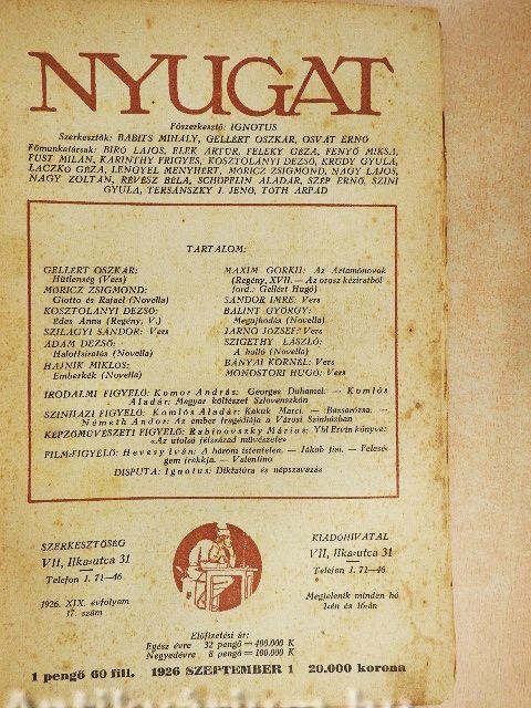 Nyugat 1926. szeptember 1.