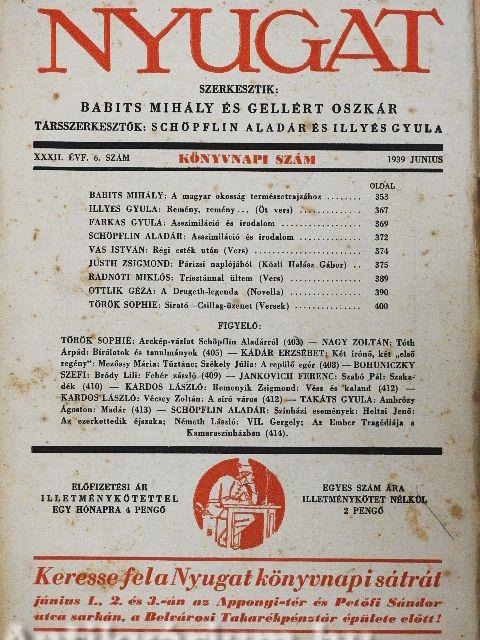 Megjegyzés: Nyomtatta a Hungária Hírlapnyomda R.-T., Budapest. További kapcsolódó személyek a tartalomjegyzékben.