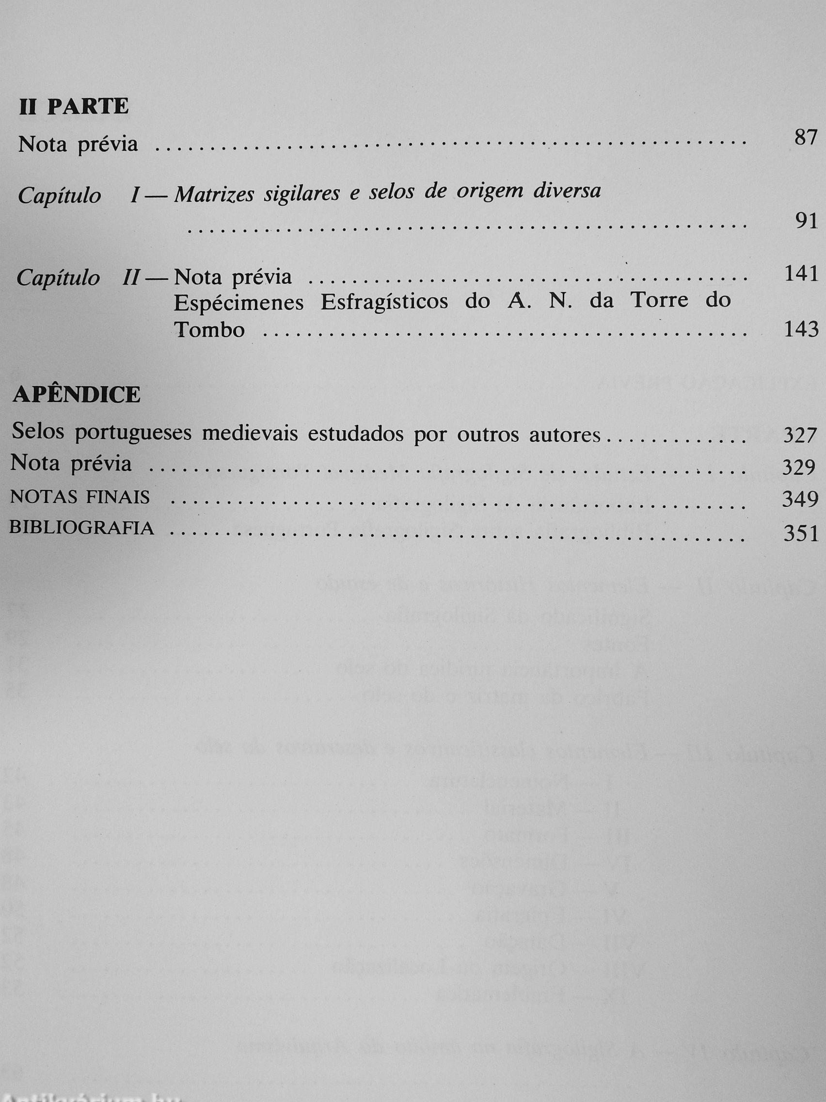 Entendeu por bem o Marqués de Abrantes dividir o seu trabalho em duas partes. Na primeira, e baseado nas características dos milhares de selos e matrizes sigilares portuguesas que obser-vou, propôe-nos uma metodología aplicável já ao estudo dos espéclmes esfragisticos, já a sua conservaçâo, restauro e reproduçao. Trata-se de uma metodología fácilmente ajustável, em funçao da cultura média dos técnicos dos nossos arqui vos oficiáis e, mesmo que sujeita a críticas constituí indubitavelmente uma pedrada no charco da nossa inércia cultural neste campo. Na segunda parte de «O Estudo da Sigilografía Medieval Portuguesa» o seu autor justificou as afirma-çôes que antes produzira acerca da variedade e riqueza gráfica da nossa sigilografía medieval, através de um »Esboço de um CORPUS Esfragístico Medieval Portugués», em que incluí as fichas descritivas de cerca de meio milhar de espéclmes esfragisticos, 85% dos quáls Inéditos. E, sob este aspecto, multo de louvar é o cuidado havido nas ilustraçôes com que copiosamente se enriqueceu esta segunda parte.