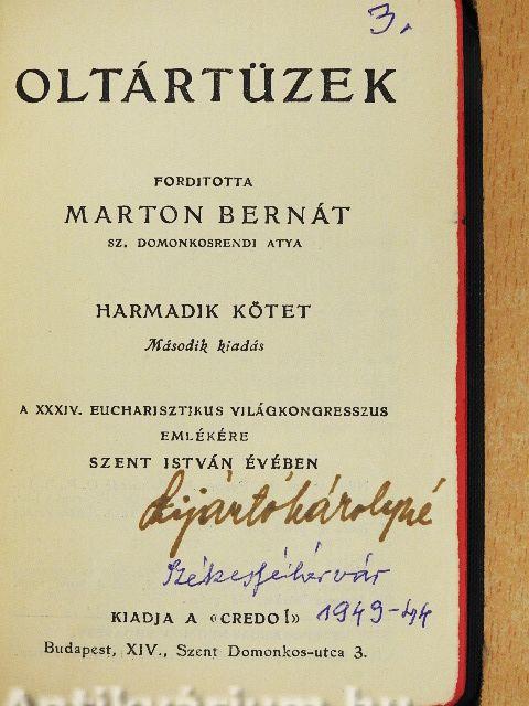 | Megjegyzés: | Nyomatta a Stephaneum r. t. Budapesten. Második kiadás. A XXXIV. Eucharisztikus Világkongresszus emlékére Szent István évében. |
