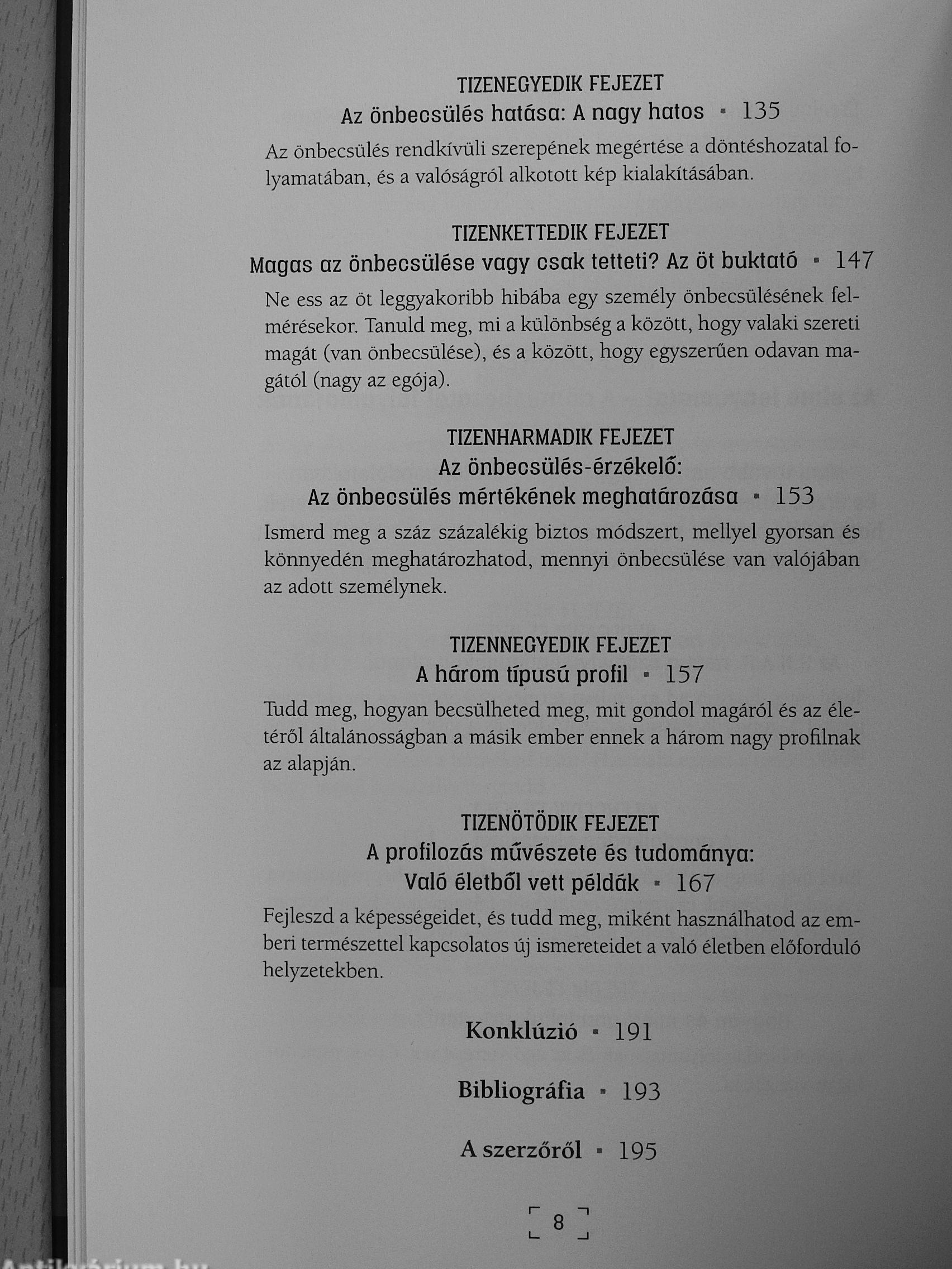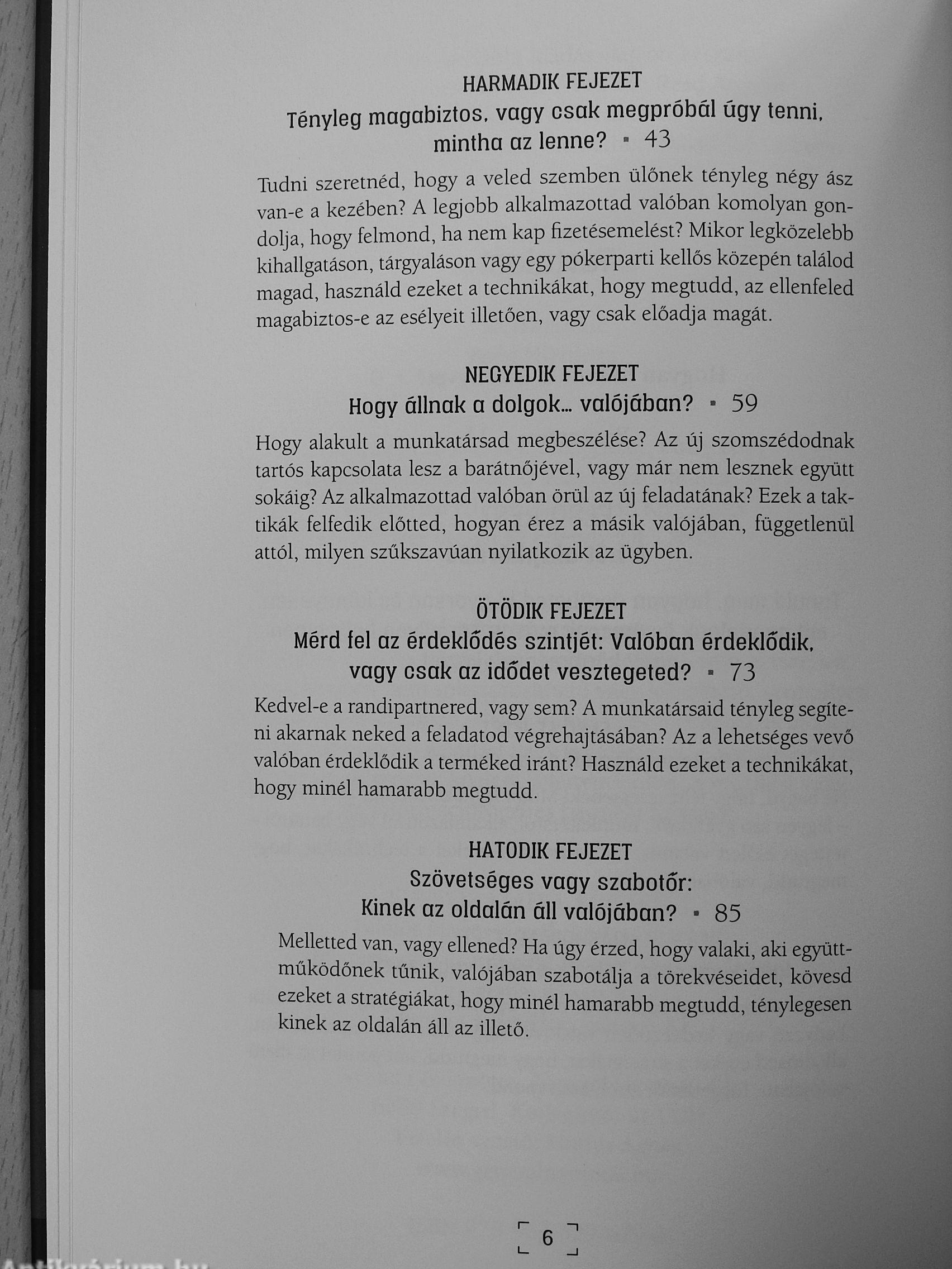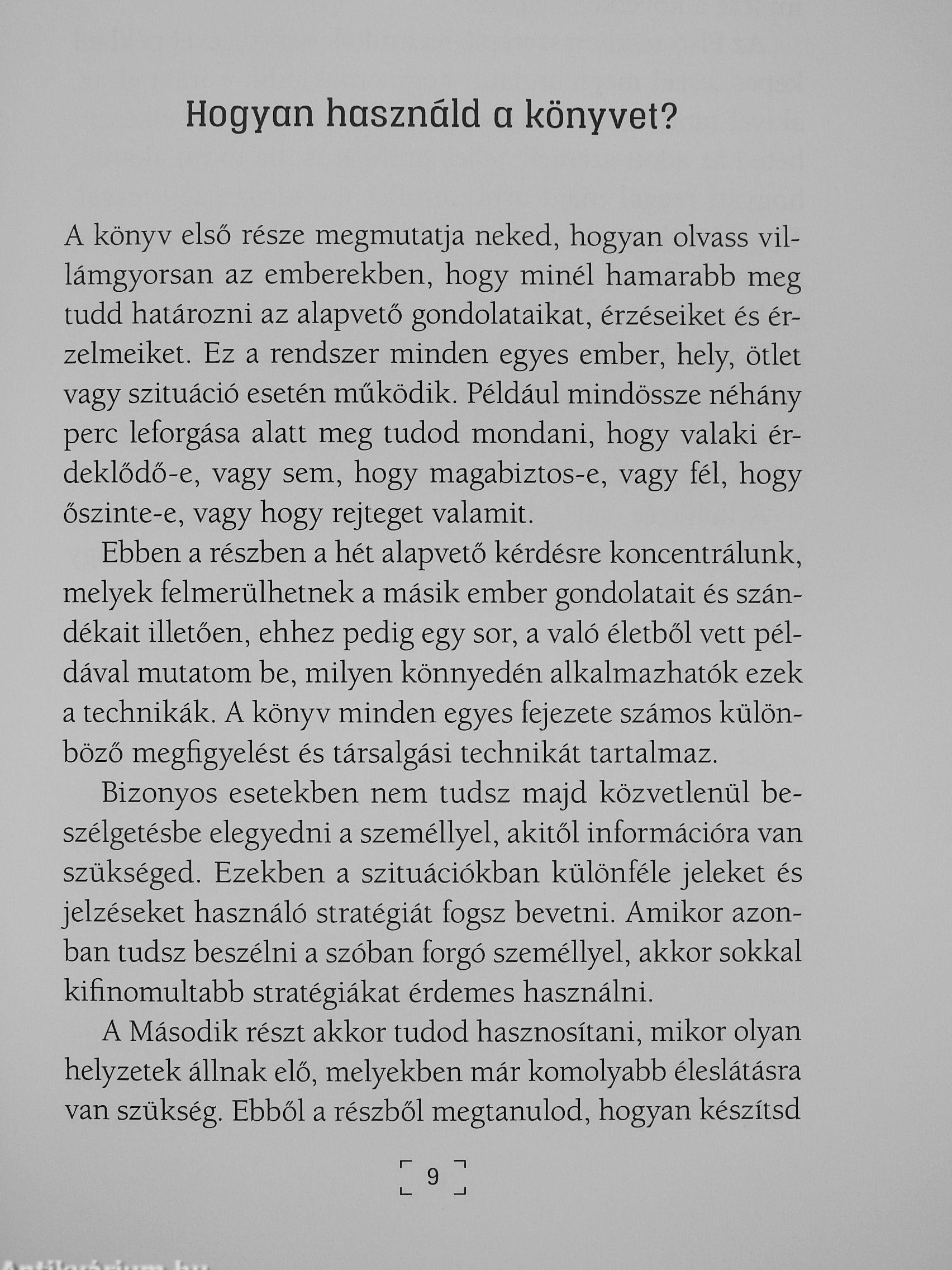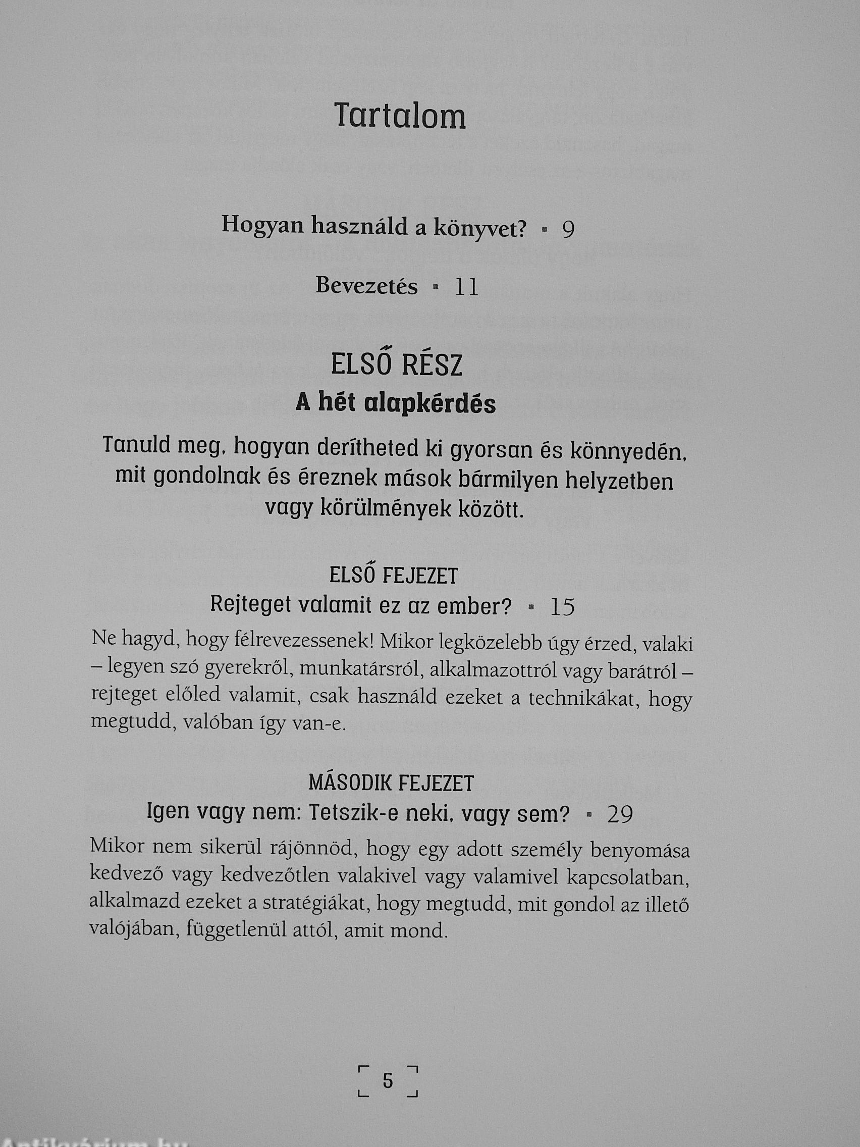 Az Olvass az emberekben lépésről lépésre felfedi előttünk, mit gondolnak 1 vagy éreznek mások valós élethelyzetekben. Világosan kiderül például, hogyan dönlheljük el, hogy egy pókerjátékos játékban marad-e, vagy bedobja a lapjait, hogy egy üzleti partner megbízható-e, vagy hogy egy első randevú jól alakul-e vagy sem. És amikor még nagyobb a tét - tárgyalások, kihallgatások bűntények, lopás vagy csalás esetében -, akkor is könnyedén ki tudjuk szűrni, ki van mellettünk, és ki van ellenünk (vagy a szeretteink ellen), hogy így időt, pénzt, energiát és fájdalmat spóroljunk meg magunknak.