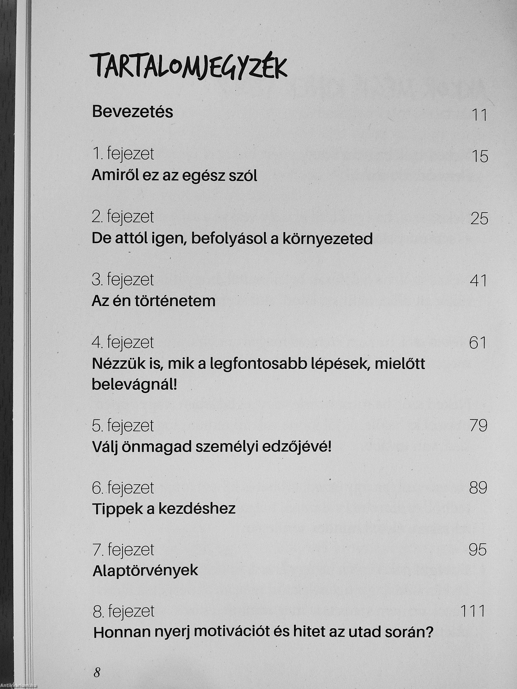 „Rendkívül őszinte gondolatok egy edzőtől, személyes tapasztalásokkall Végre egy könyv, ami nem a kalóriák számolásával akar rávenni az életmódváltásra, testmozgásra, egy könyv, amiben nem konkrét recepteket kapsz az életviteled kialakításához, hanem számos ötletet és tippet, hogy kipróbálhasd neked mi az ami igazán jó és hatásos, amit be tudsz építeni a mindennapjaidba.