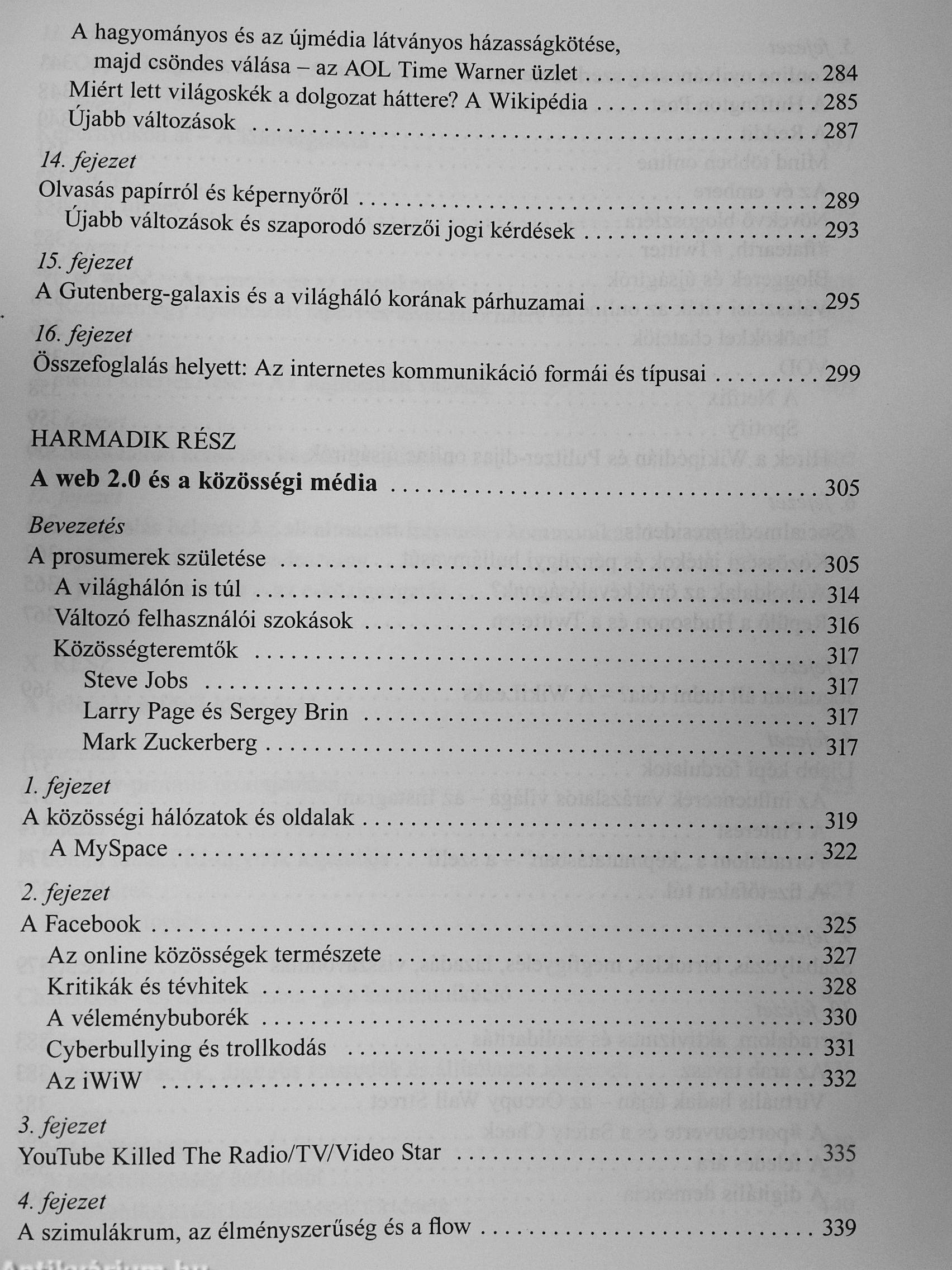 Olyan komplex munkát tart tehát a kezében az Olvasó, mely körbejárja a vizsgált téma multidiszciplináris: kommunikációs, médiatudományi, társadalmi, kulturális, technológiai, illetve kisebb mértékben filozófiai aspektusait is.