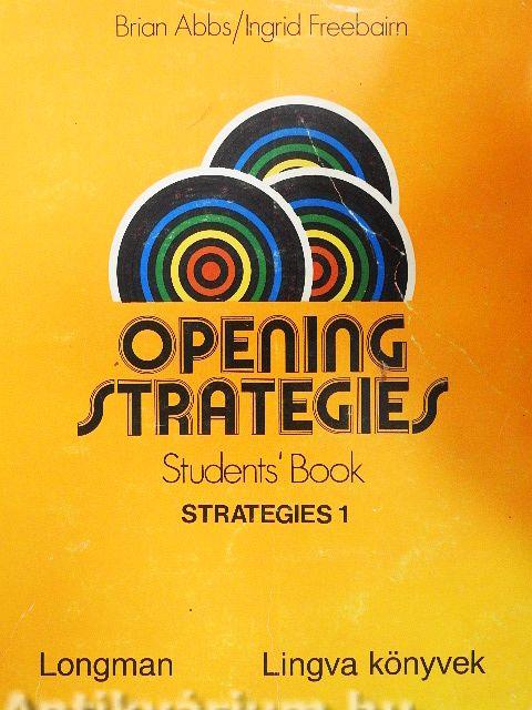 Az Opening Strategies a kezdők és újrakezdők tanítására egyaránt alkalmas. Célja, hogy a nyelvet tanulót az első lépésektől kezdve életszerű helyzetekben beszédtevékenységre ösztönözze. A közlések, kérdések helyes megalkotásához szükséges nyelvi eszközöket - tervszerűen bővítve - kínálja fel a beszélőnek, így jut el a nyelvtanuló a kezdetben kötött beszédhelyzetekből az idegennyelvi beszédkészség kialakulásáig. Az ismétlő gyakorlatok változatos formákban segítik az élőnyelvi szerkezetek bevésését; a páros és csoportos szerepjátékok szórakoztató lehetőségeket kínálnak a négy nyelvi alapkészség arányos fejlesztéséhez.