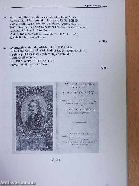 | Sorozatcím: | Opera Antikvárium árverése |