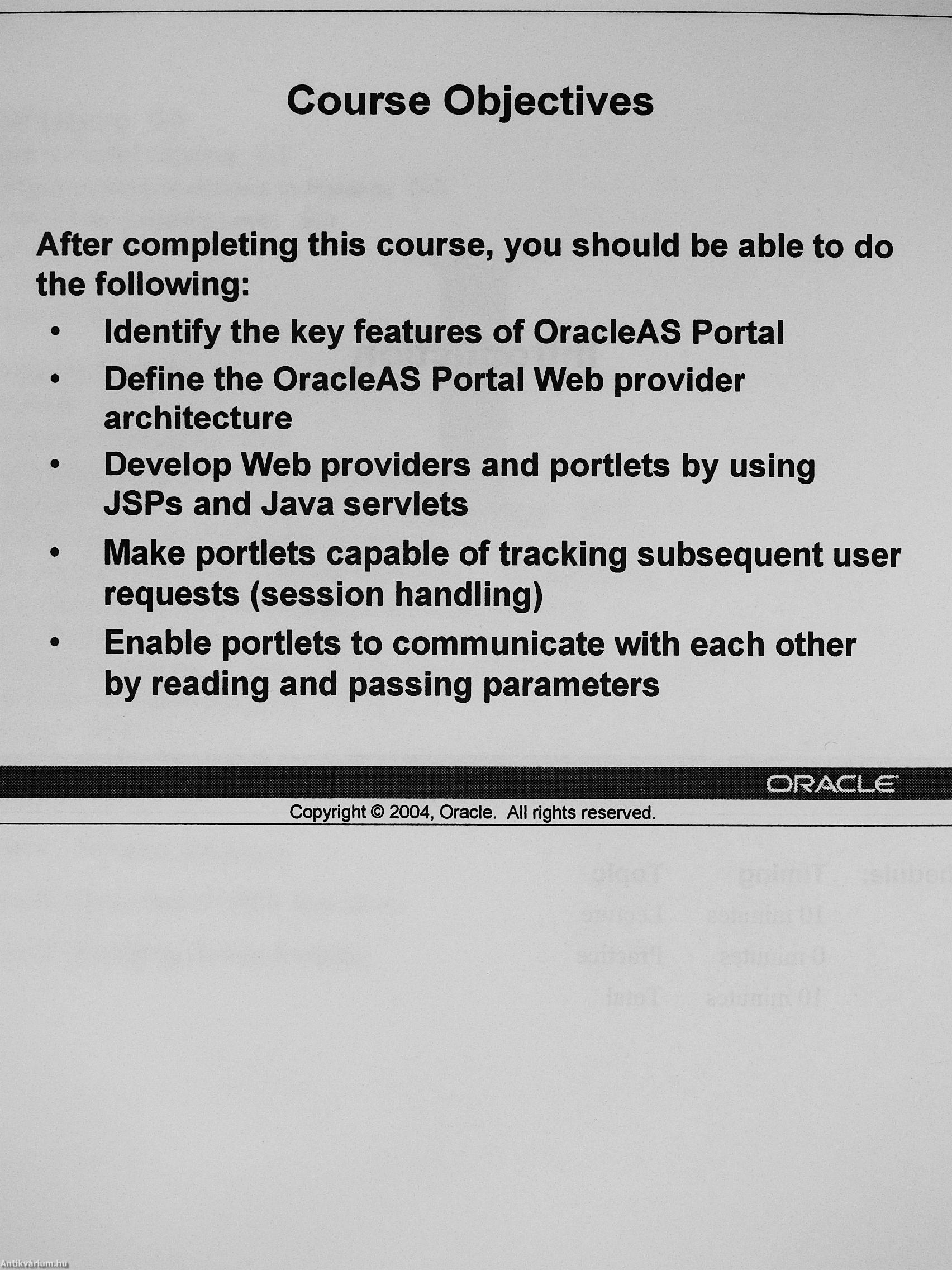 OracleAS Portal 10g: Build Portlets with Java