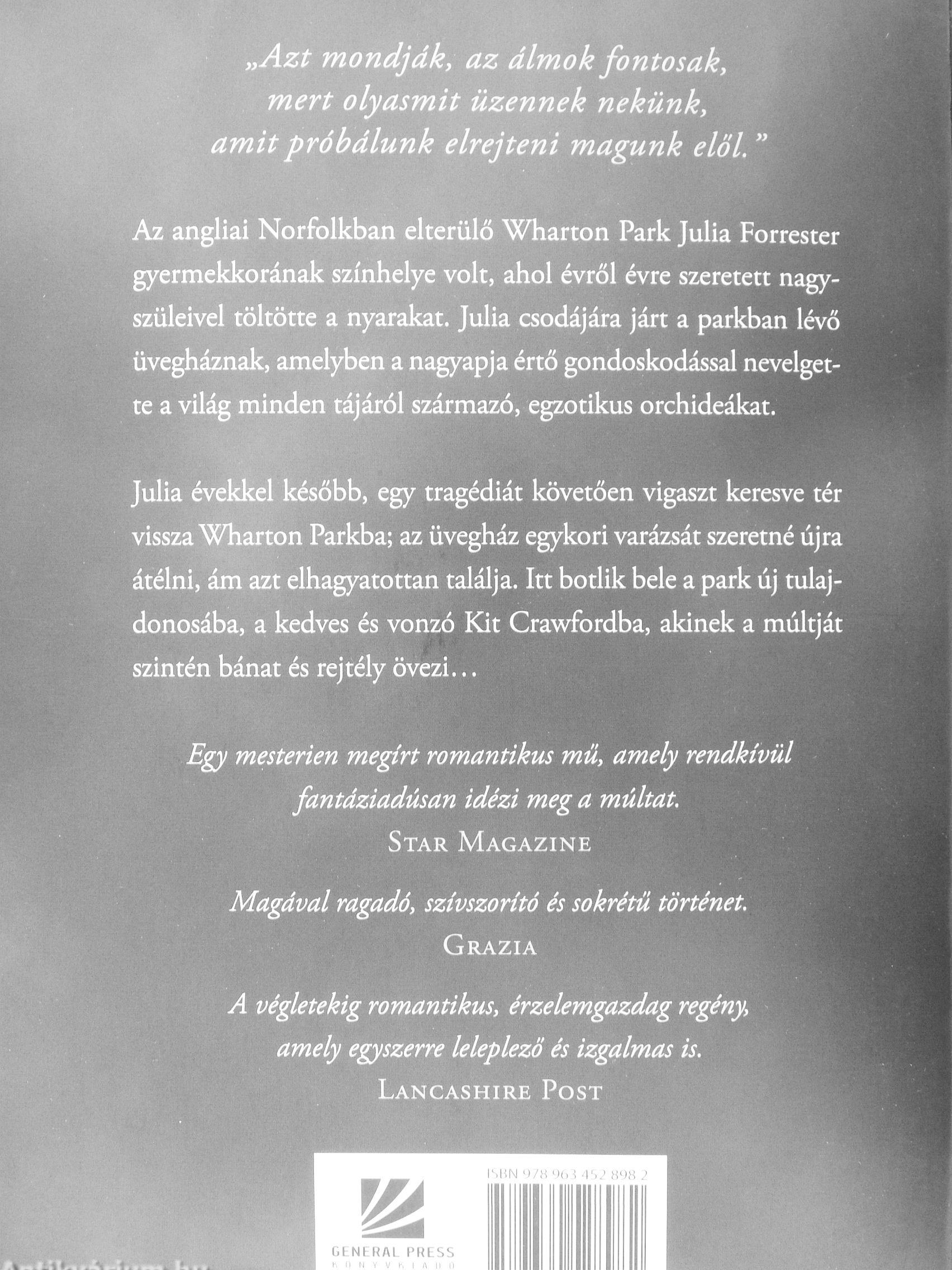 Az angliai Norfolkban elterülő Wharton Park Júlia Forrester gyermekkorának színhelye volt, ahol évről évre szeretett nagyszüleivel töltötte a nyarakat. Júlia csodájára járt a parkban lévő üvegháznak, amelyben a nagyapja értő gondoskodással nevelget-te a világ minden tájáról származó, egzotikus orchideákat.