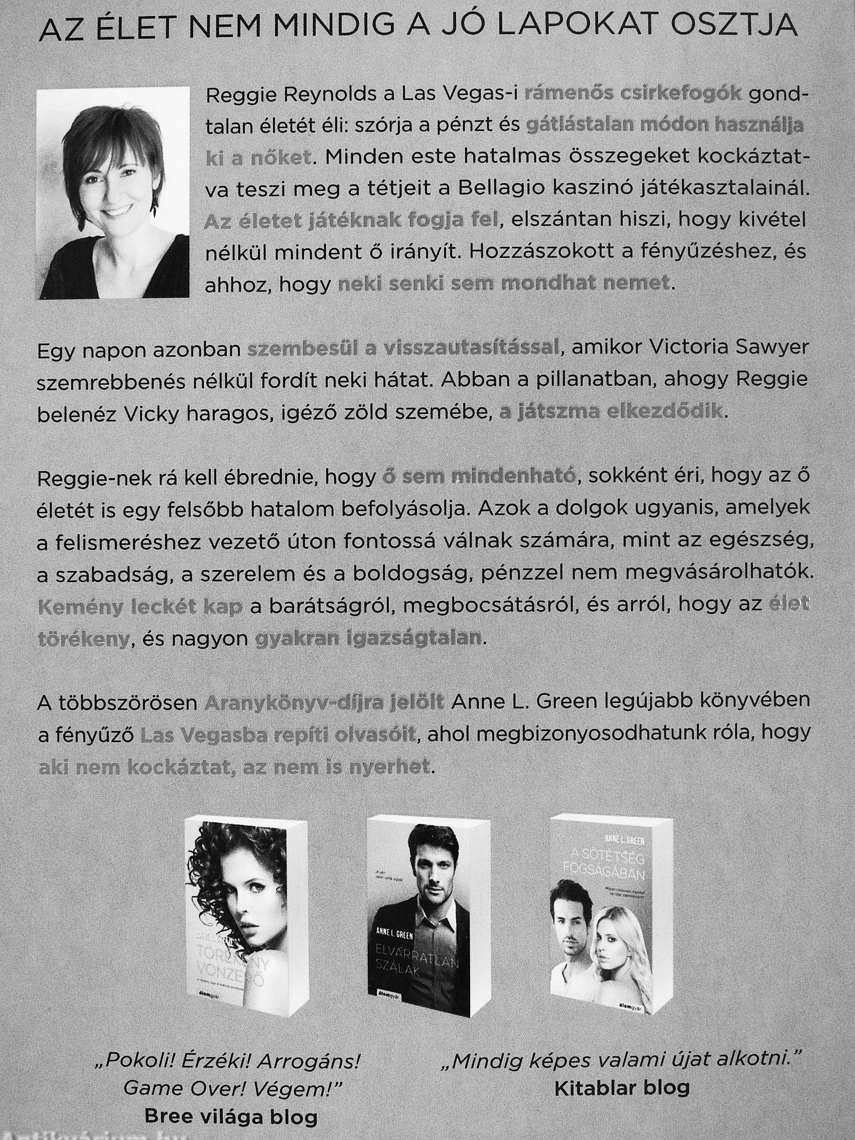 A többszörösen Ar^nvkönv-¦¦ -"íij.í^ Anne L. Green legújabb könyvében a fényűző Las Vegasbá r^pR. -?.ivssélú, ahol megbizonyosodhatunk róla, hogy aki n.m köckextat, íít: nem í- nyf^'-íí.