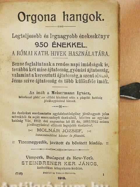 Legteljesebb és legnagyobb énekeskönyv 950 énekkel/A római kath. hivek használatára/Benne foglaltatnak a rendes napi imádságok is, továbbá két mise ájtatosság, gyónási ájtatosság, valamint a keresztuti ájtatosság, a szent olvasó, Jézus szive ájtatosság és több különféle imák