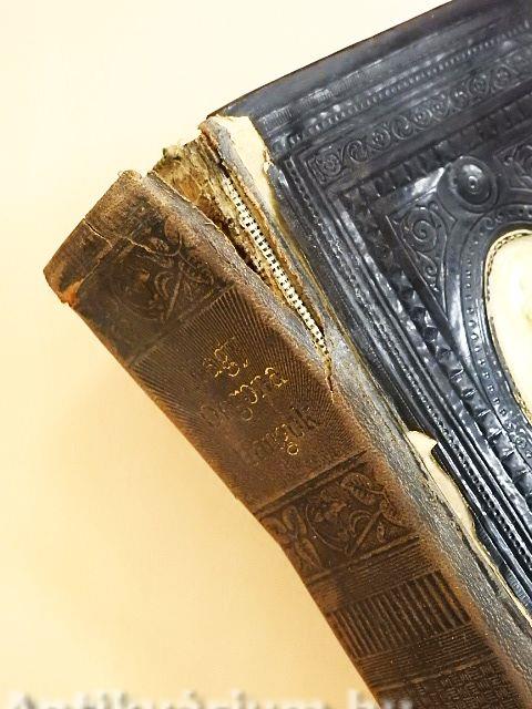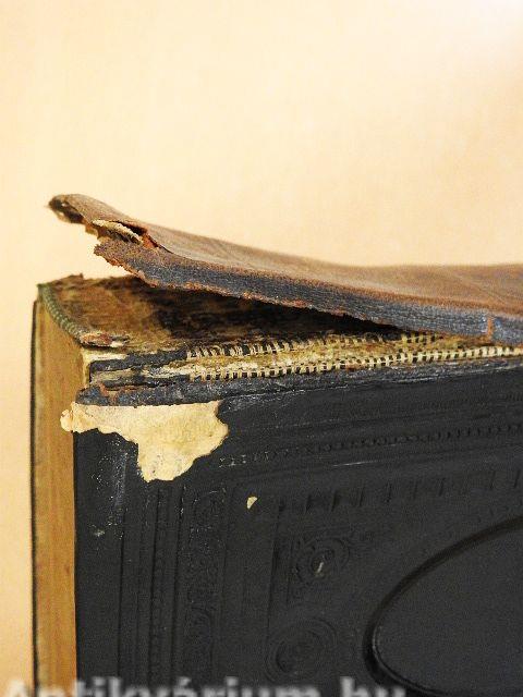 A gerinc sérült, részben elvált a könyvtesttől. A borító sarkai sérültek. A lapélek és néhány lap foltos. A kötés megtört. Az 55-58. oldal hiányzik a könyvből.