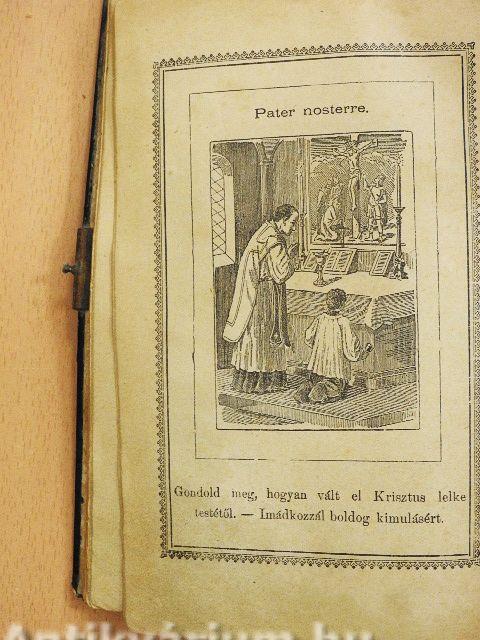 Félbőr gerincű, kaucsuk kötéstáblákkal, az első kötéstáblán ablakos szentképpel, oldalt záródó fémcsattal. Tizennegyedik, javított és bővített kiadás. Az imák a Meisermann Ignácz, bátorkeszi plébános előbbi kiadásai után a püspöki hatóság jóváhagyásával birnak. Fekete-fehér képekkel. Nyomtatja Steinbrener Ker. János, Winterbergben.