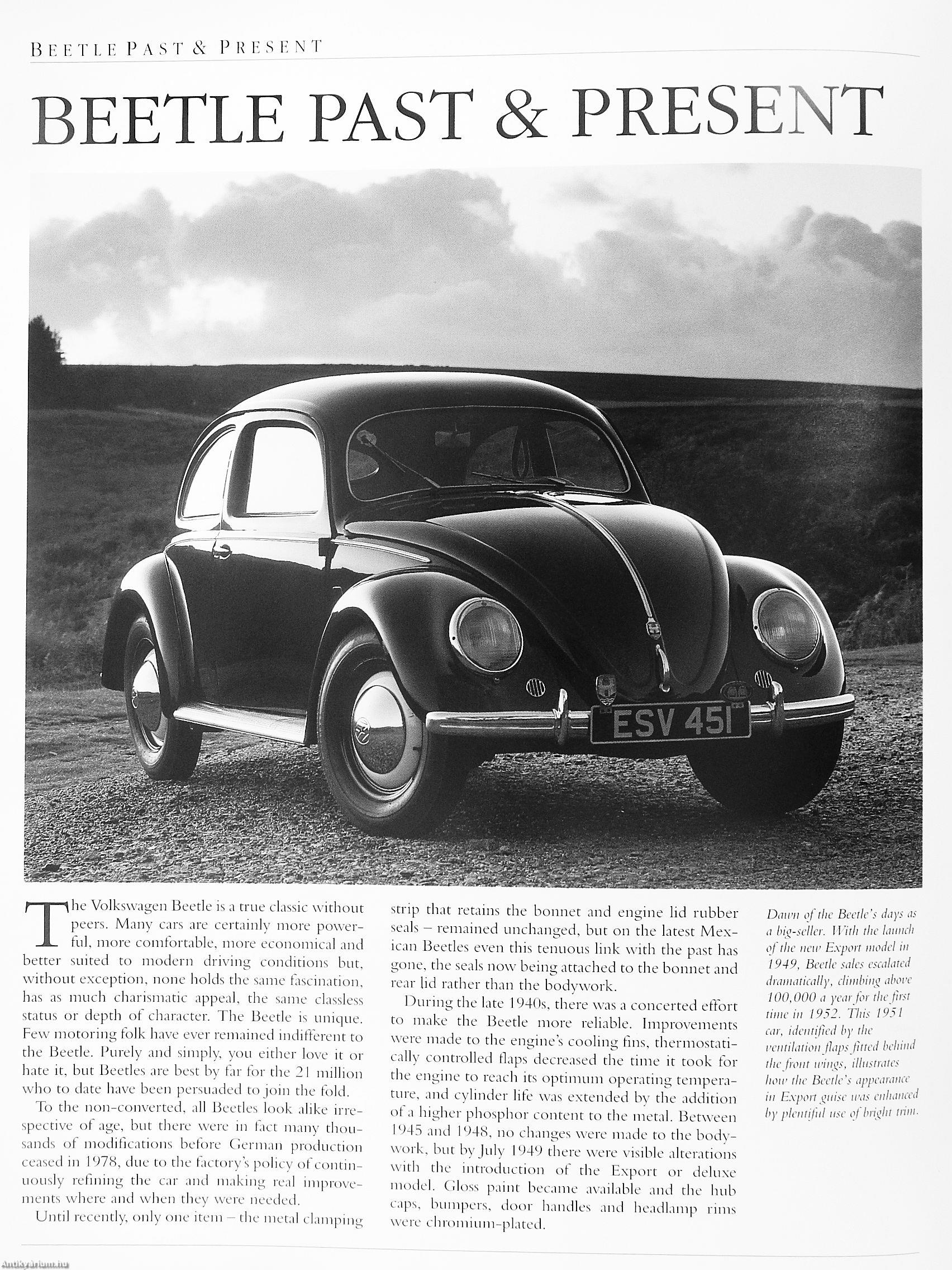 It is extraordinary how comprehensively the Beetle was developed. When you realise that a modem Mexican Beetle shares not a single component with the first post-war cars to emerge from VW's Wolfsburg factory, you begin to understand the enormity of the task of detailing year-by-year modifications. But Beetle enthusiasts will admire the way every change of consequence is explained in this book.