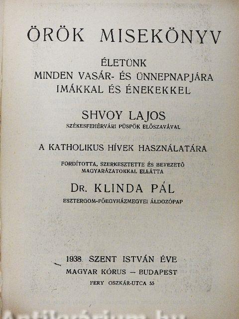 Az "Örök Misekönyv" a budapesti Eucharisztikus Világkongresszus kegyelmeinek és inditásainak állandósítására készült. Hisszük, hogy az Úr Jézus, úgy mint más országokban, nálunk Magyarországon is a Kongresszus kapcsán kegyelmével felrázza a katolikus lelkeket, nemcsak a buzgókat, hanem a közönyöseket is. A Kongresszus után az lesz apostoli kötelessége a lelkipásztorkodó papságnak és a Katolikus Akcióban buzgólkodó világi apostoloknak, a hitoktatóknak és a kedves Nővéreknek, hogy ezt a felbuzdult eucharisztikus életet minél bensőségesebb öntudatosabbá s minél maradandóbbá tegyék. Vissza