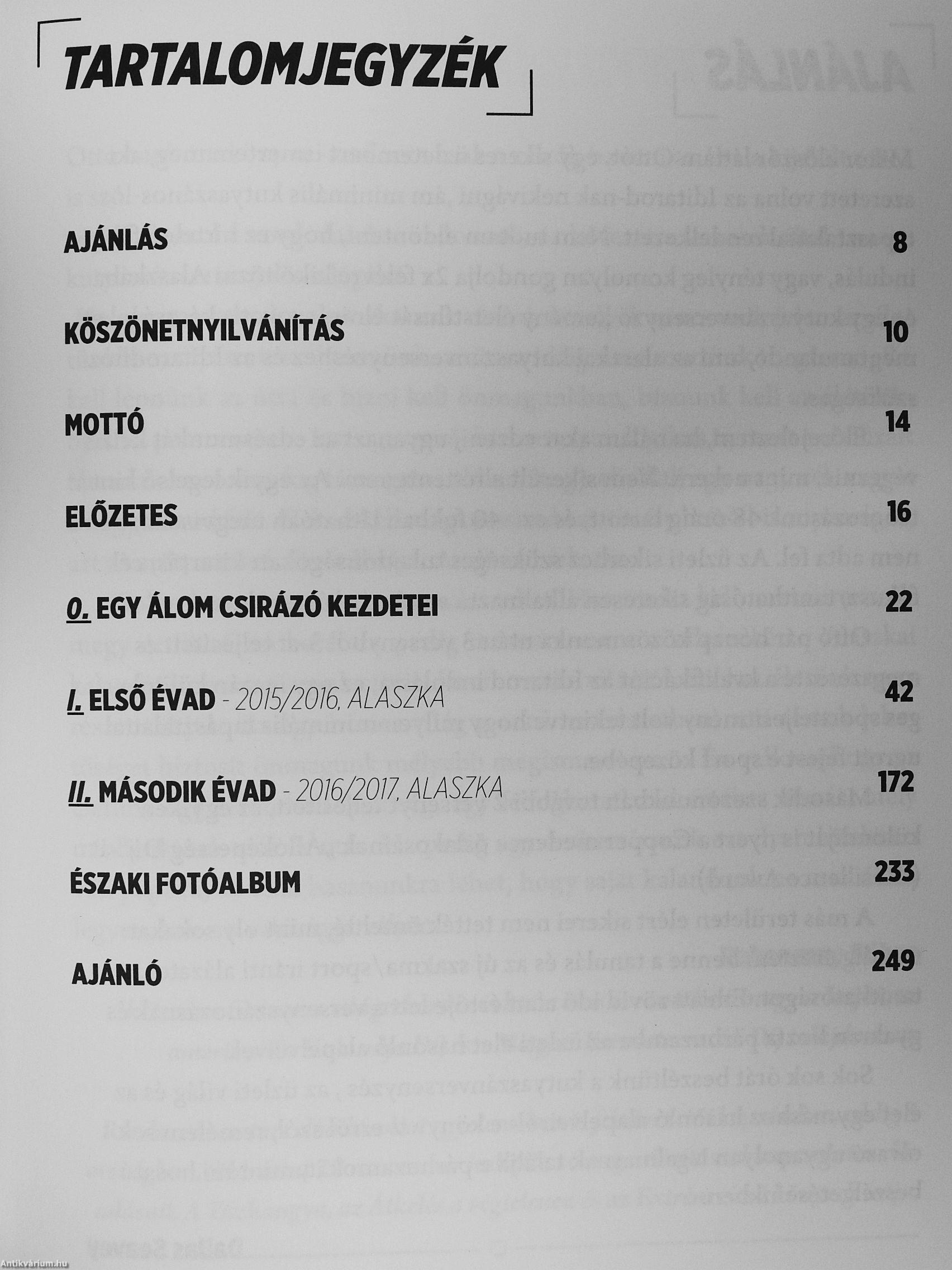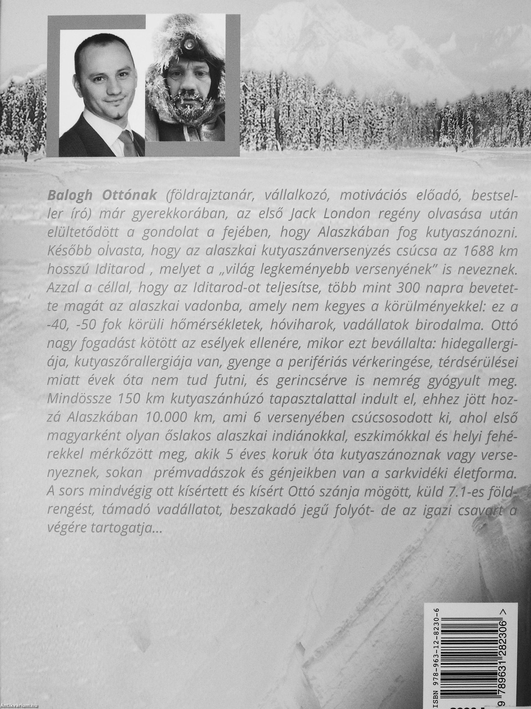 Balogh Ottónak (földrajztanár, vállalkozó, motivációs előadó, bestseller író) már gyerekkorában, az első jack London regény olvasása után elültetődótt a gondolat a fejében, hogy Alaszkában fog kutyaszónozni. Később olvasta, hogy az alaszkai kutyaszánversenyzés csúcsa az 1688 km hosszú Iditarod , melyet a „világ legkeményebb versenyének" is neveznek. Azzal a céllal, hogy az Iditarod-ot teljesítse, több mint 300 napra bevetette magát az alaszkai vadonba, amely nem kegyes a körülményekkel: ez a -40, -50 fok körüli hőmérsékletek, hóviharok, vadállatok birodalma. Ottó nagy fogadást kötött az esélyek ellenére, mikor ezt bevállalta: hidegallergiája, kutyaszőrallergiája van, gyenge a perifériás vérkeringése, térdsérülései miatt évek óta nem tud futni, és gerincsérve is nemrég gyógyult meg. Mindössze 150 km kutyaszánhúzó tapasztalattal indult el, ehhez jött hozzá Alaszkában 10.000 km, ami 6 versenyében csúcsosodott ki, ahol első magyarként olyan őslakos alaszkai indiánokkal, eszkimókkal és... Tovább