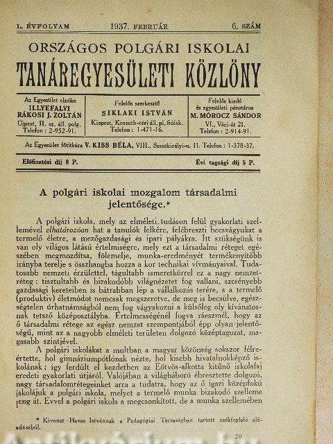 Országos Polgári Iskolai Tanáregyesületi Közlöny 1937. február