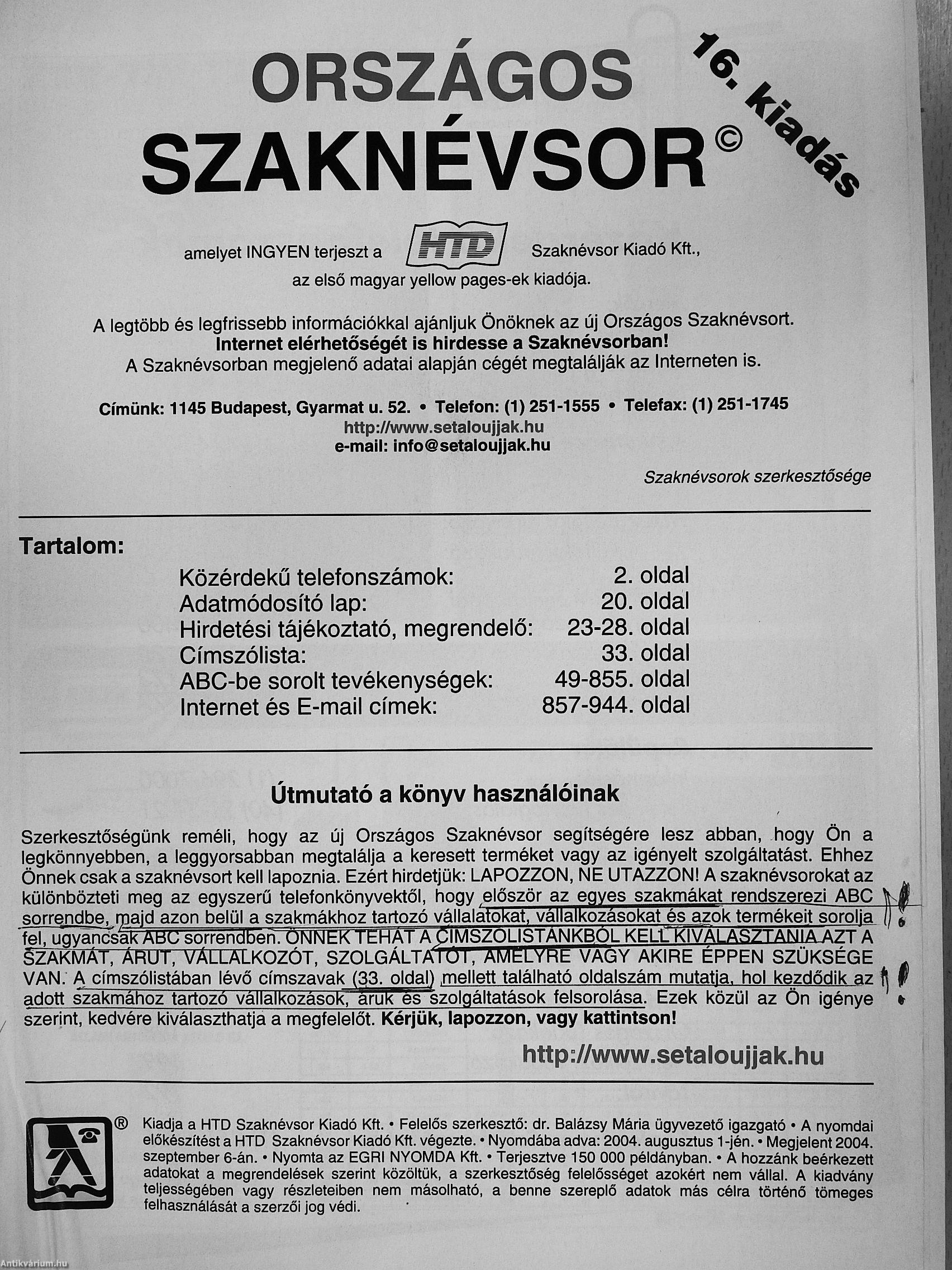 Kiadó: HTD Szaknévsor Kiadó Kft.