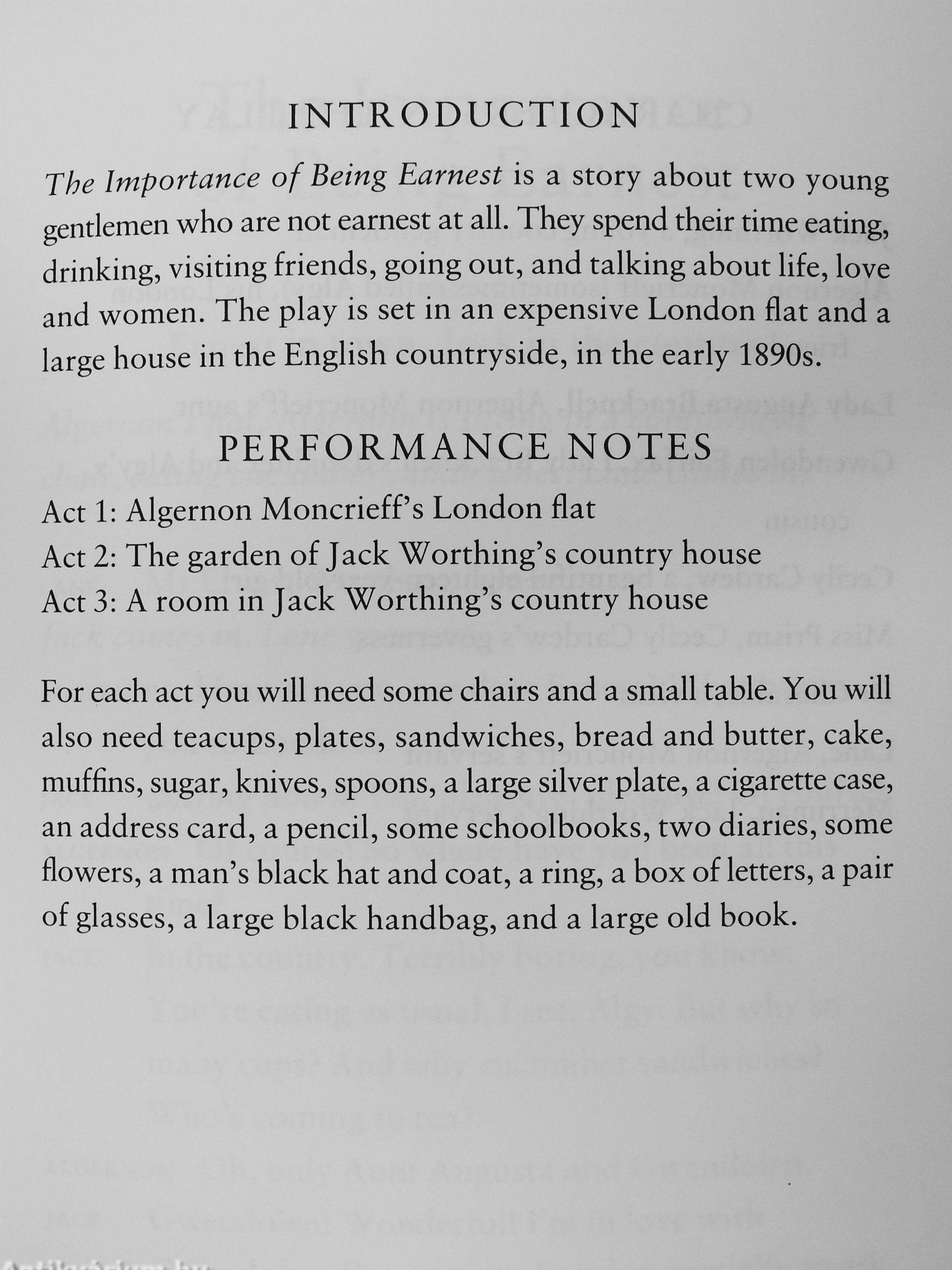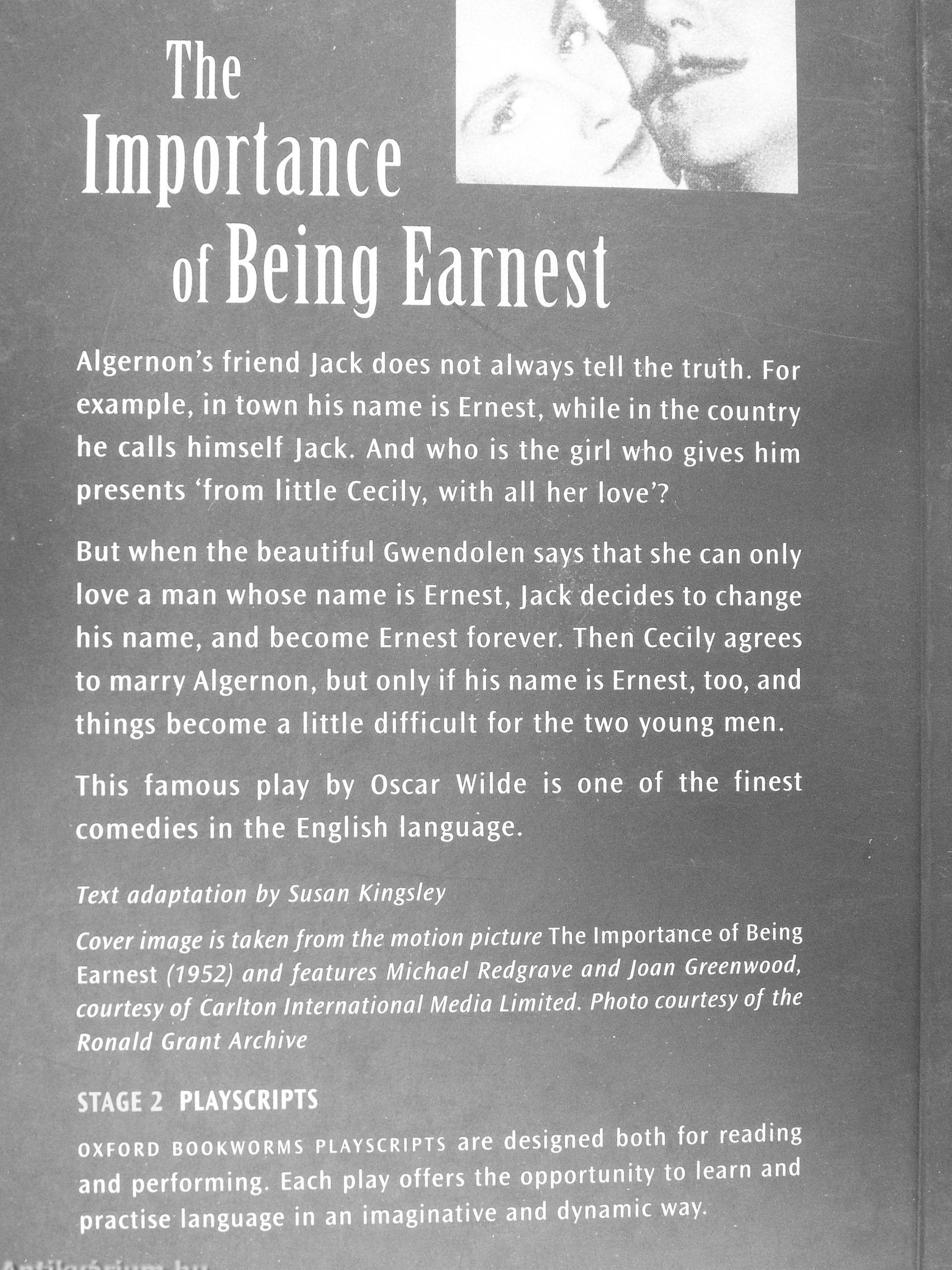 But when the beautiful Gwendolen says that she can only love a man whose name is Ernest, Jack decides to change his name, and become Ernest forever. Then Cecily agrees to marry Algernon, but only if his name is Ernest, too, and things become a little difficult for the two young men.
