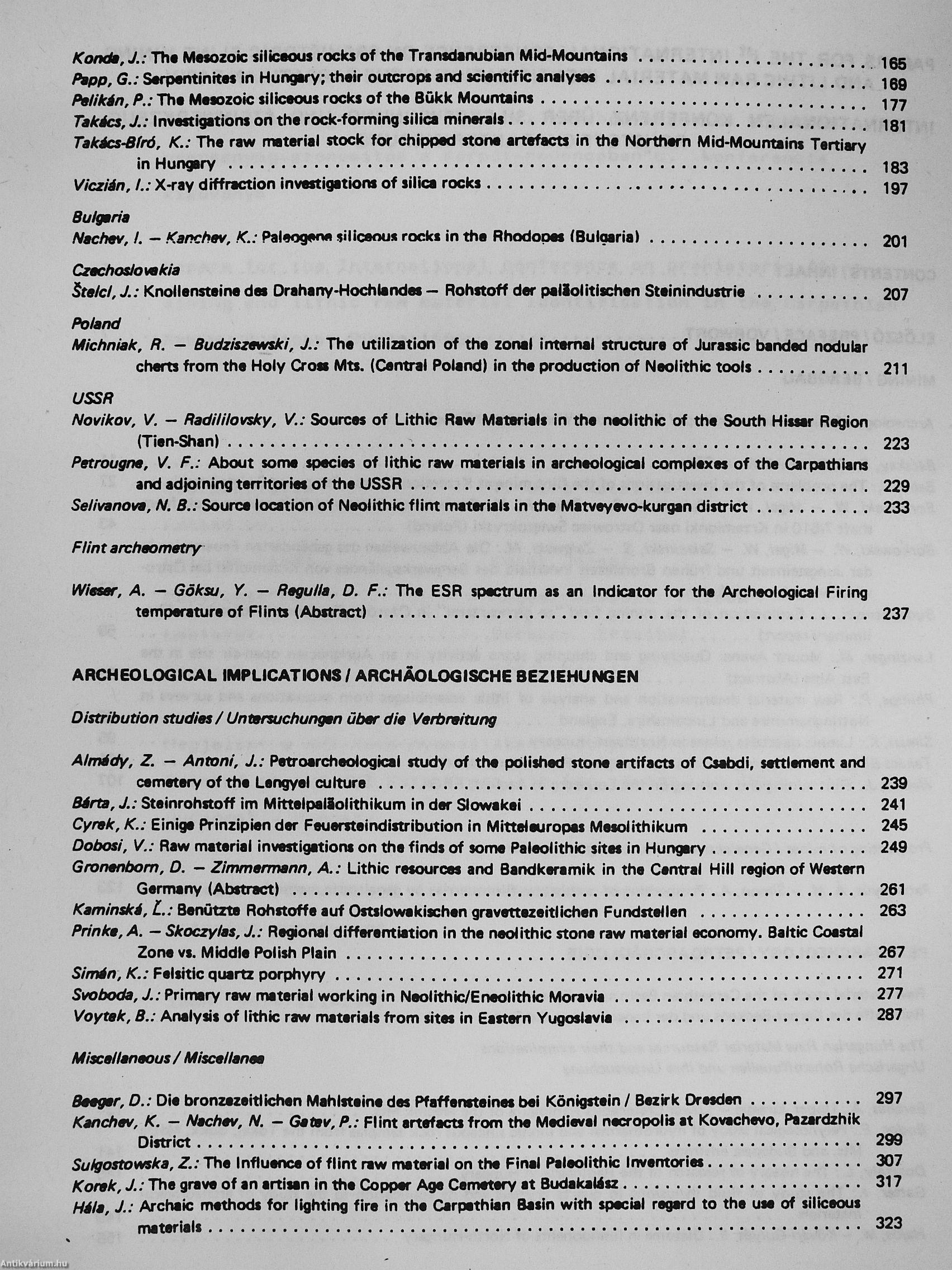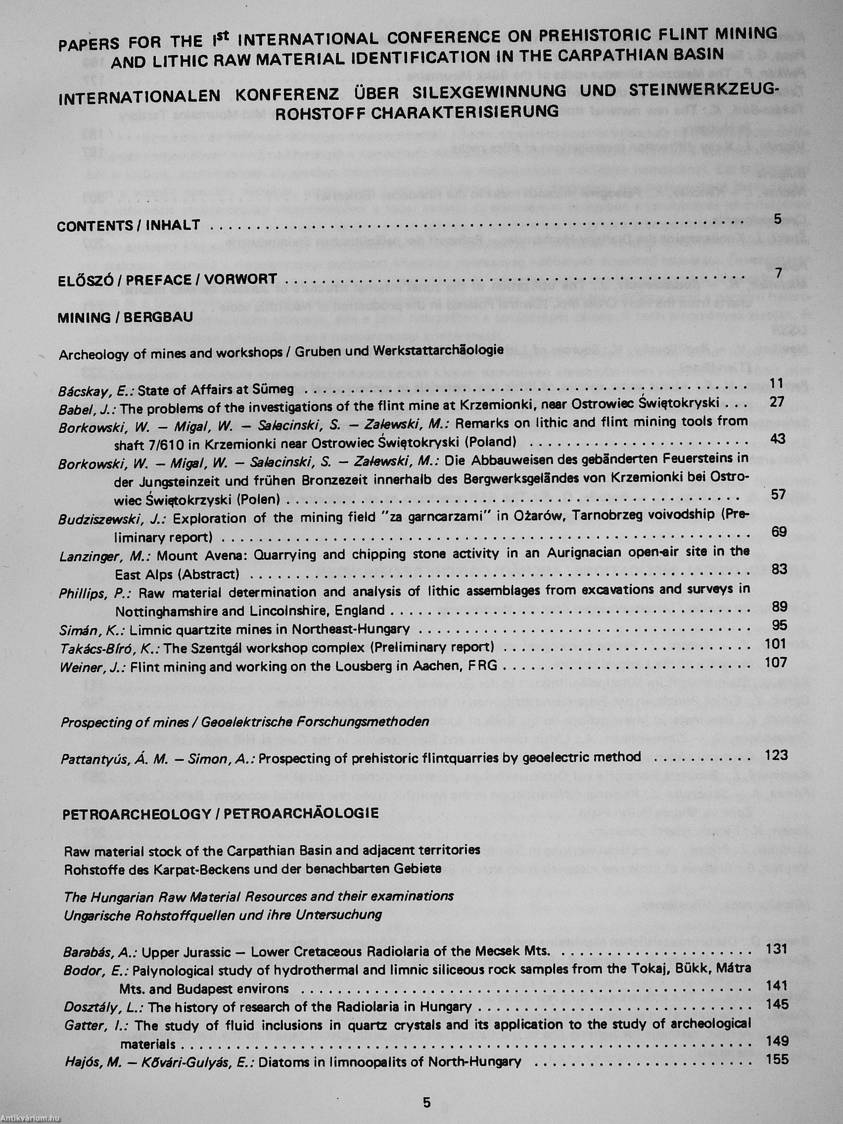 Nemzetközi konferencia Budapest-Sümeg, 1986 május 20-22/Internationale Konferenz über Silexgewinnung und Steinwerkzeug-Rohstoff Charakterisierung im Karpathenbecken Budapest-Sümeg, 20-22 Mai, 1986/International conference on prehistoric flint mining and lithic raw material identification in the Carpathian Basin Budapest-Sümeg, 20-22 May, 1986