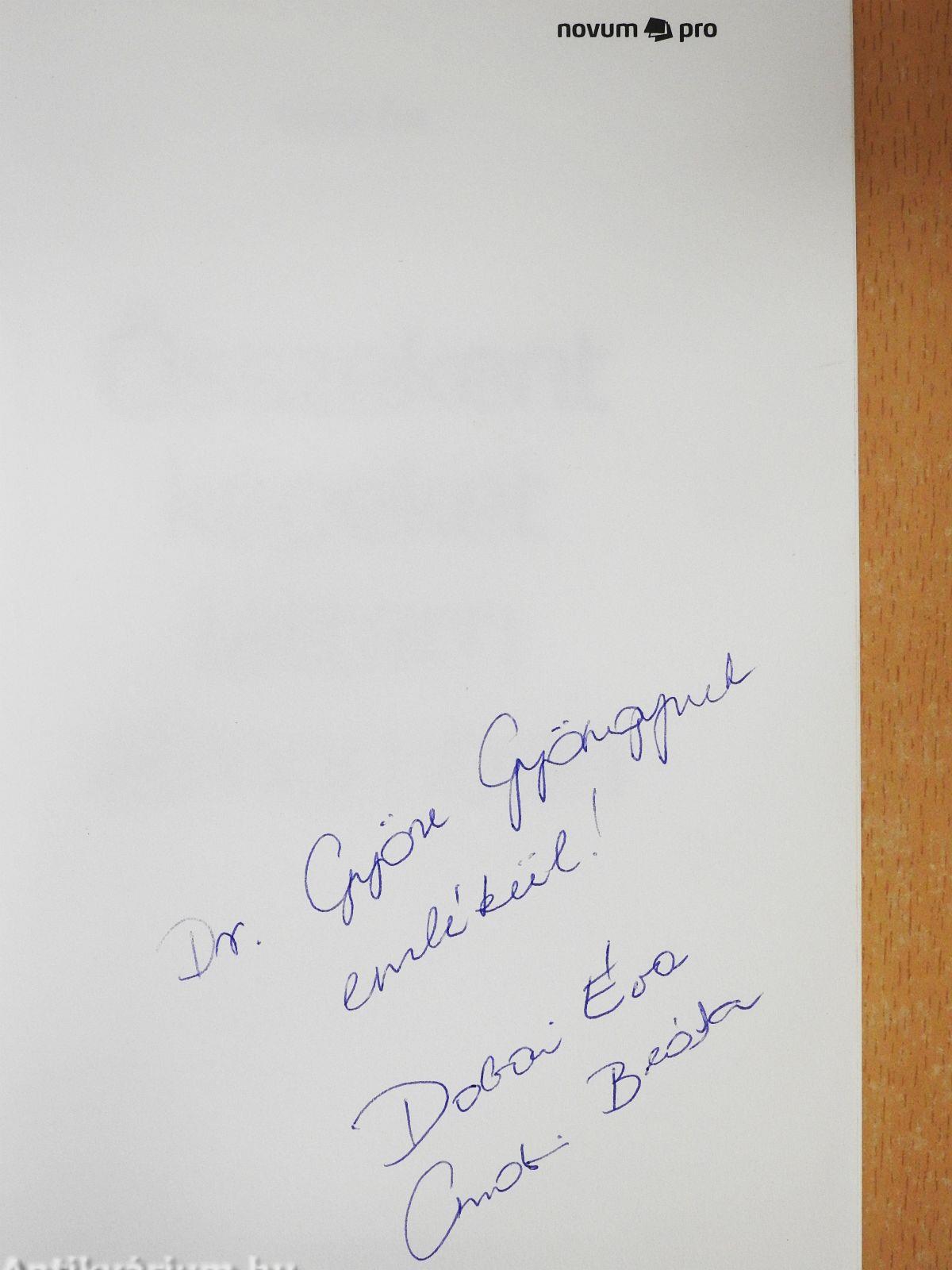Az előlapon a szerző, Dobai Éva és még egy személy névre szóló dedikációja látható.