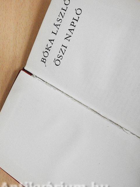 Az Őszi napló - Bóka László utolsó befejezett munkája - valamivel több mint kéthónapnyi időt és egy teljes életet sűrít száz lapon. Ez a sűrű ősz, mikor majdnem háborúba sodródott a világ, Bóka László számára a megfeszített munka időszaka volt, ekkor írta utolsó regényét, a Nandut. A regényírás, a napló motívumainak keresztezési pontja, ez teremt kapcsolatot a politika és az irodalom, a tanári munka és a személyes élet, a napló főtémái között. Dokumentum hűségű és értékű tanúvallomás ez a könyv 1962 őszéről, s egyben utolsó regényének keletkezéstörténete is. S utószó az egész életműhöz, melynek eszméit, mondanivalóit még egyszer és végérvenyesen megfogalmazza a napló, mintegy utolsó üzenetként.