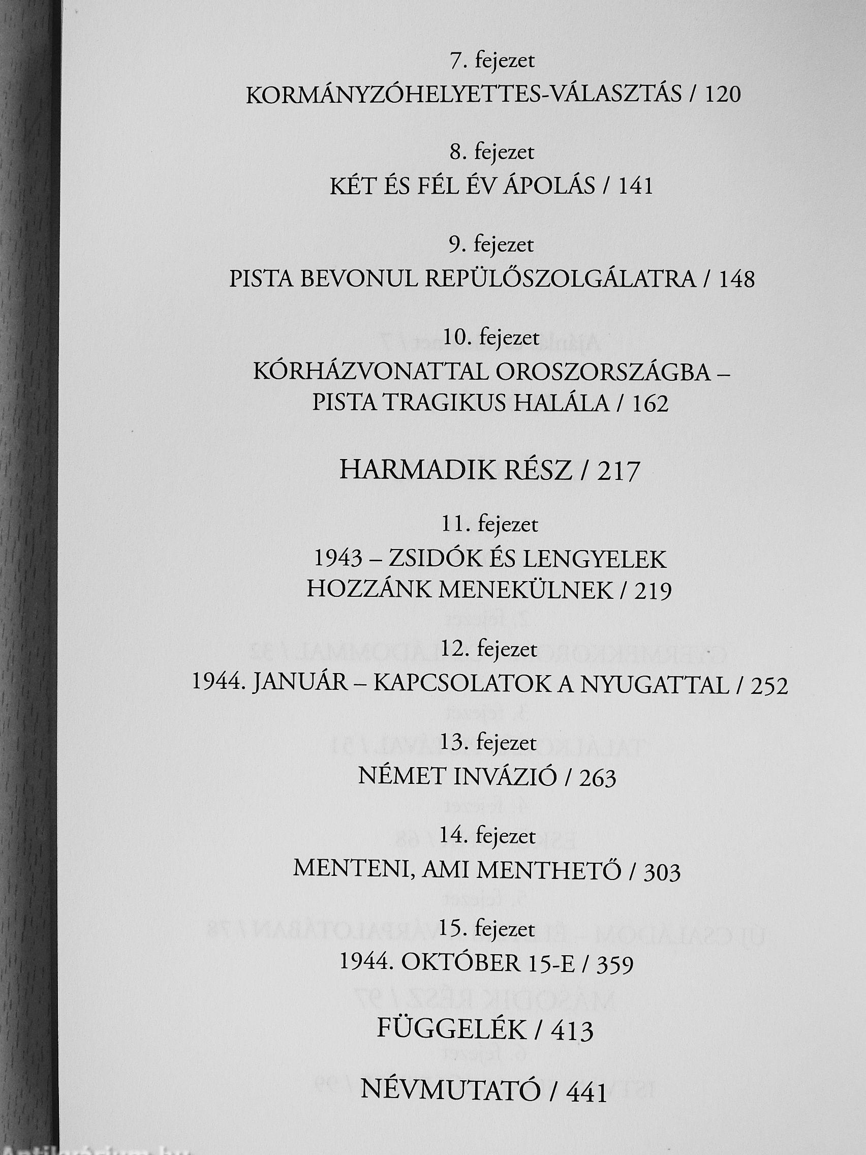 1942-ben vagyunk, zajlik a második világháború. Magyarország, voltaképpen kényszerűségből, a hitleri Németország szövetségese. A kormányzó nem örül ennek (a fia sem). Nem hajlandó teljesíteni Hitler minden kérését. Menye egyre jobban megszereti. Ő most ápolónő az orosz fronton. Férje a magyar légierő pilótája. Lezuhan a gépével; életét veszti. Egyesek német szabotázst rebesgetnek; mindenesetre Hitleréknek jól jön ez a baleset. Az özvegy, immár a kormányzói palotában, mindenféle menekültek, köztük magyar zsidók megsegítésén fáradozik. A németek váratlanul megszállják Magyarországot. A kormányzó tehetetlen, bár itt-ott azért tanúsít némi ellenállást.