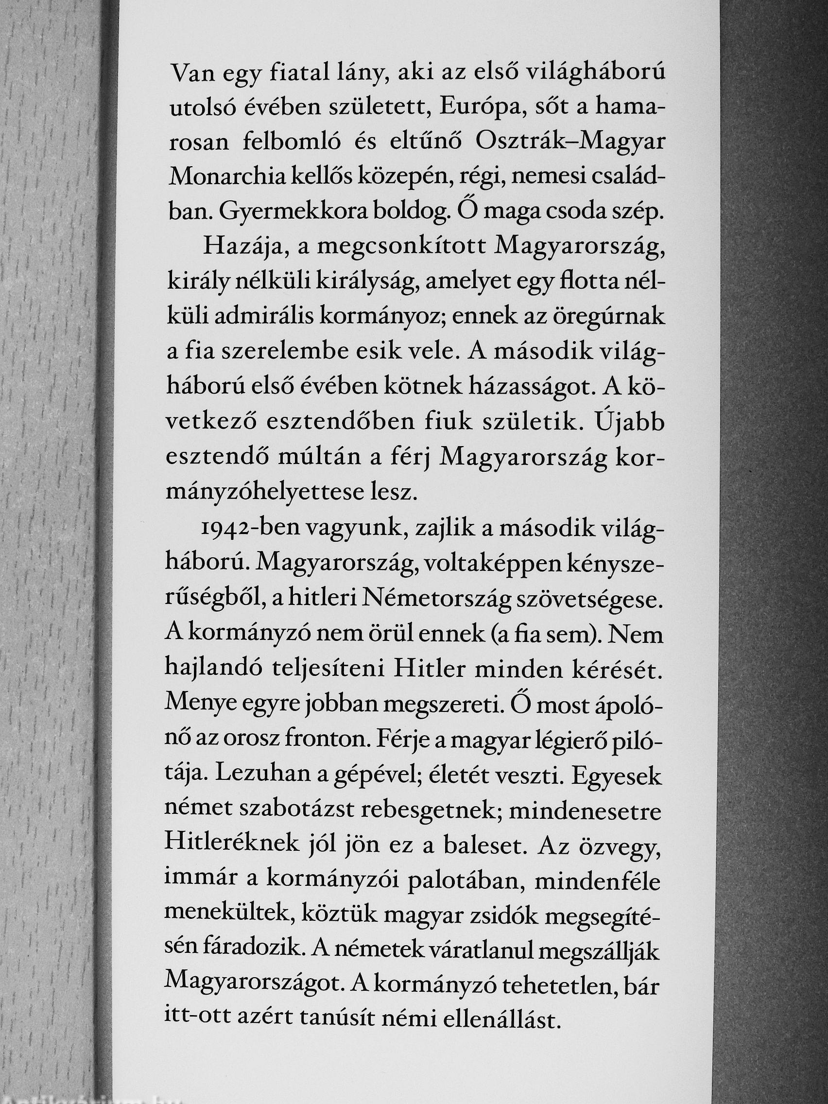 1942-ben vagyunk, zajlik a második világháború. Magyarország, voltaképpen kényszerűségből, a hitleri Németország szövetségese. A kormányzó nem örül ennek (a fia sem). Nem hajlandó teljesíteni Hitler minden kérését. Menye egyre jobban megszereti. Ő most ápolónő az orosz fronton. Férje a magyar légierő pilótája. Lezuhan a gépével; életét veszti. Egyesek német szabotázst rebesgetnek; mindenesetre Hitleréknek jól jön ez a baleset. Az özvegy, immár a...