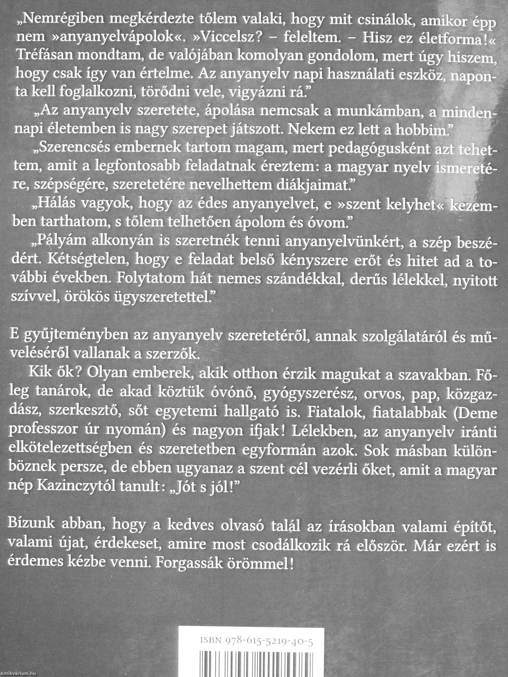 E gyűjteményben az anyanyelv szeretetéről, annak szolgálatáról és műveléséről vallanak a szerzők.