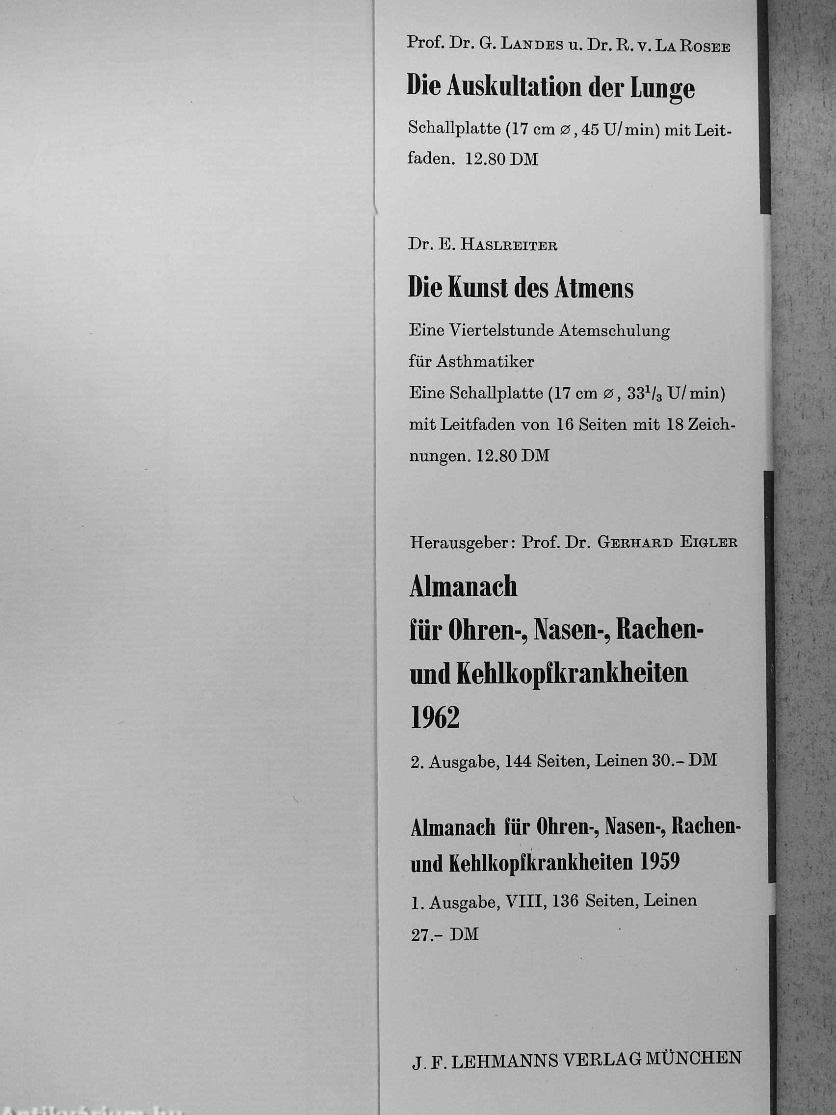 Almanach für Ohren-, Nasen-, Rachen-und Kehlkopfkrankheiten 1959