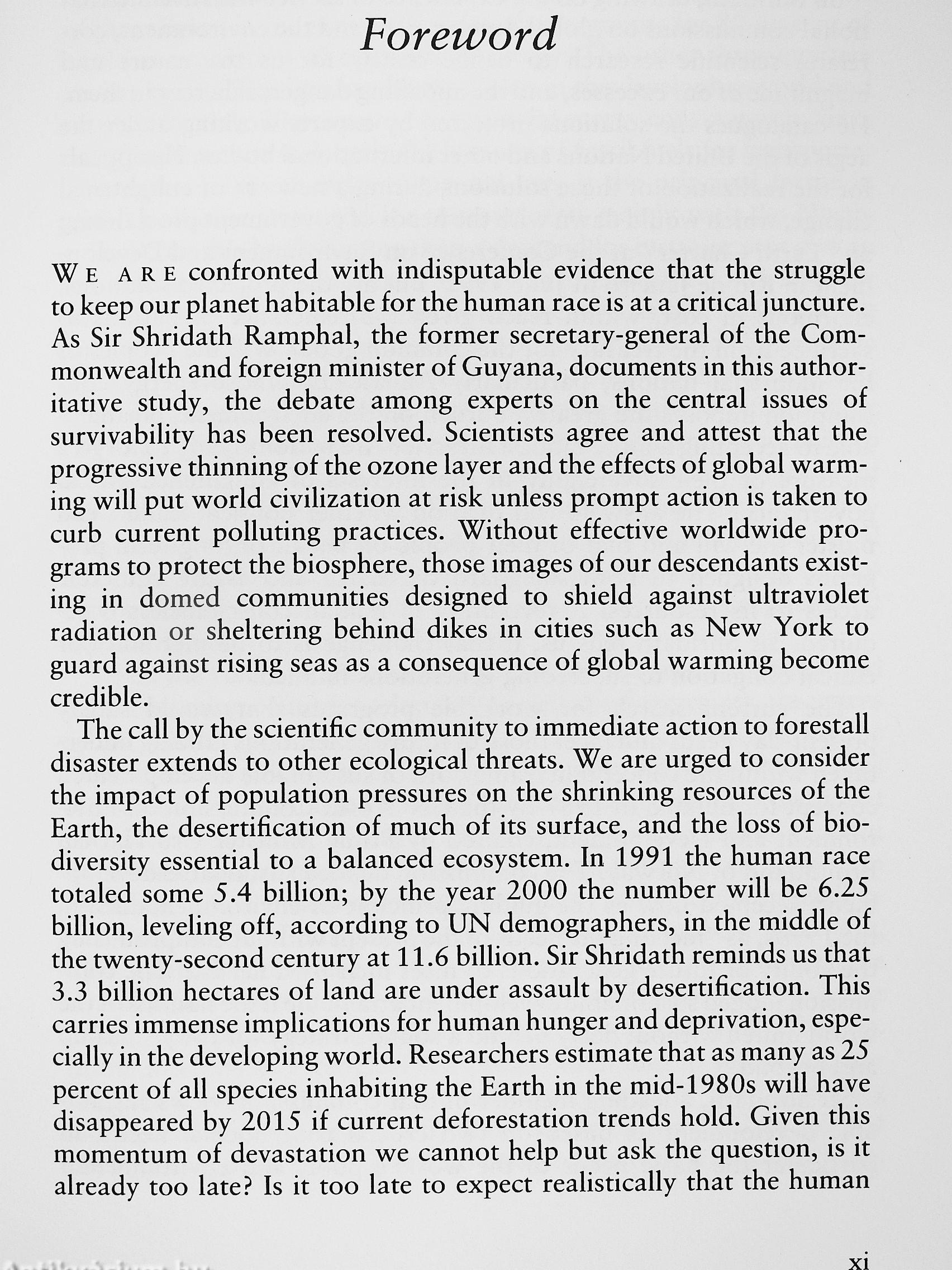 "Sir Sriridath Ramphal's book sums it all up. Unless industrialized and developing countries join forces in a new, more equitable international cooperation to save our endangered planet, we will all be in grave peril."