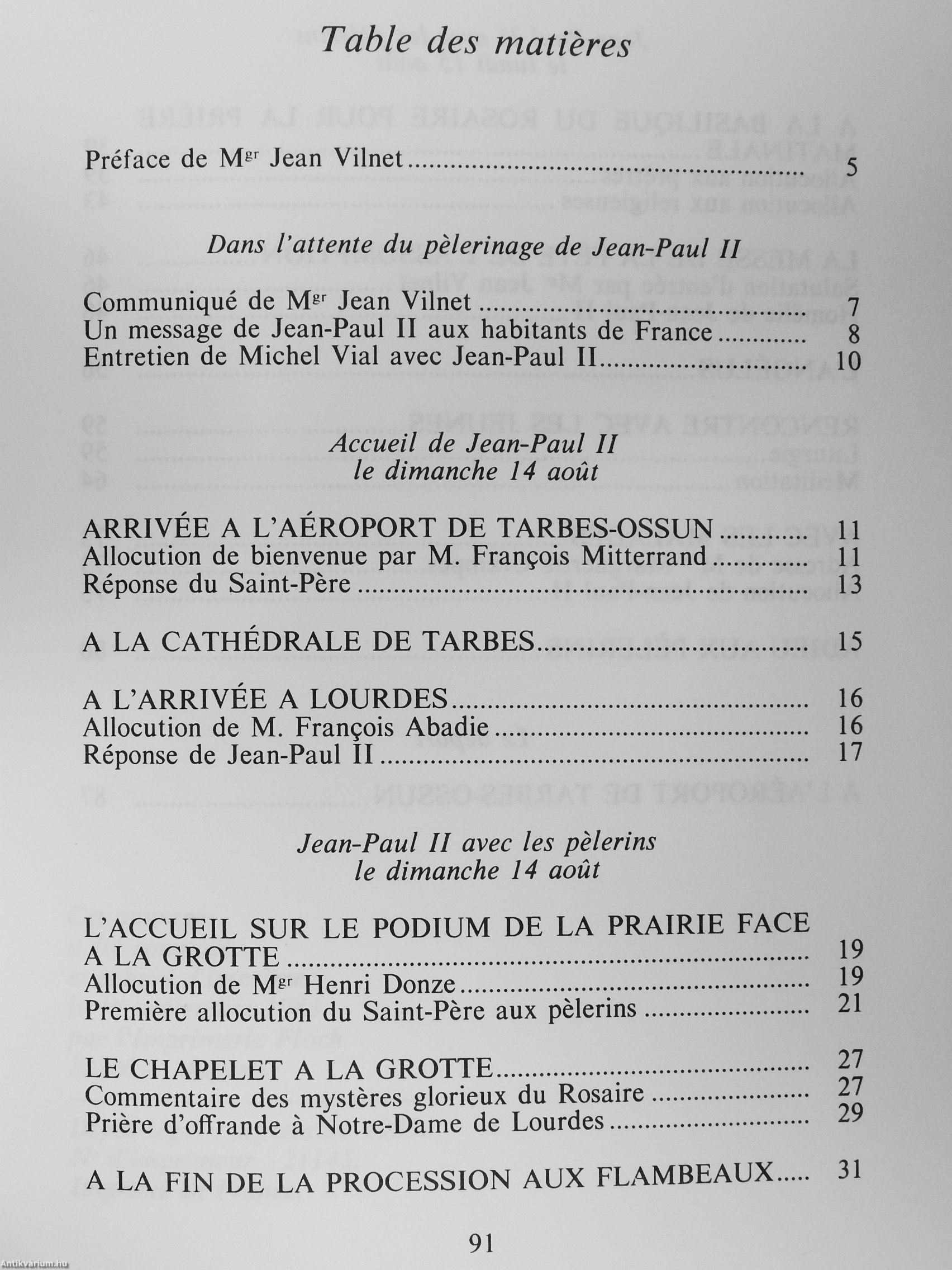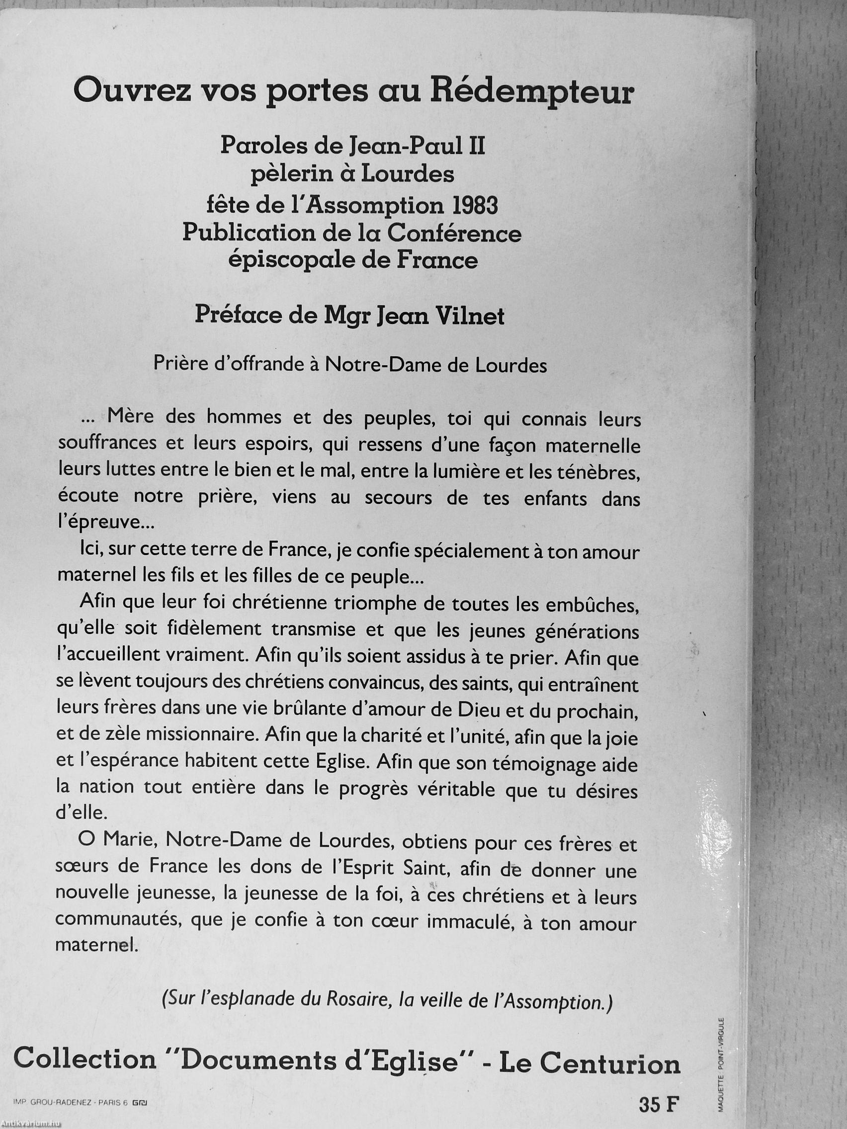 Paroles de Jean-Paul II pelerin a Lourdes fete de l'Assomption 1983 Publication de la Conférence épiscopale de France