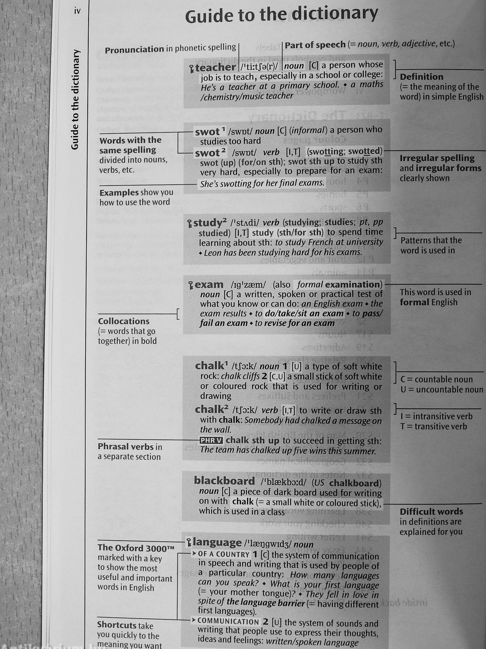 What you'll find in this dictionary 36,000 examples of how words are used 1,000+ new words - bfog, hoody, message board, reality TV ; 4,400+ collocations -i the Words that always go together : 3,200+ grammar patterns so you avoid mistakes - do you say tell to me or tell mel i ]¦'¦[.¦. '